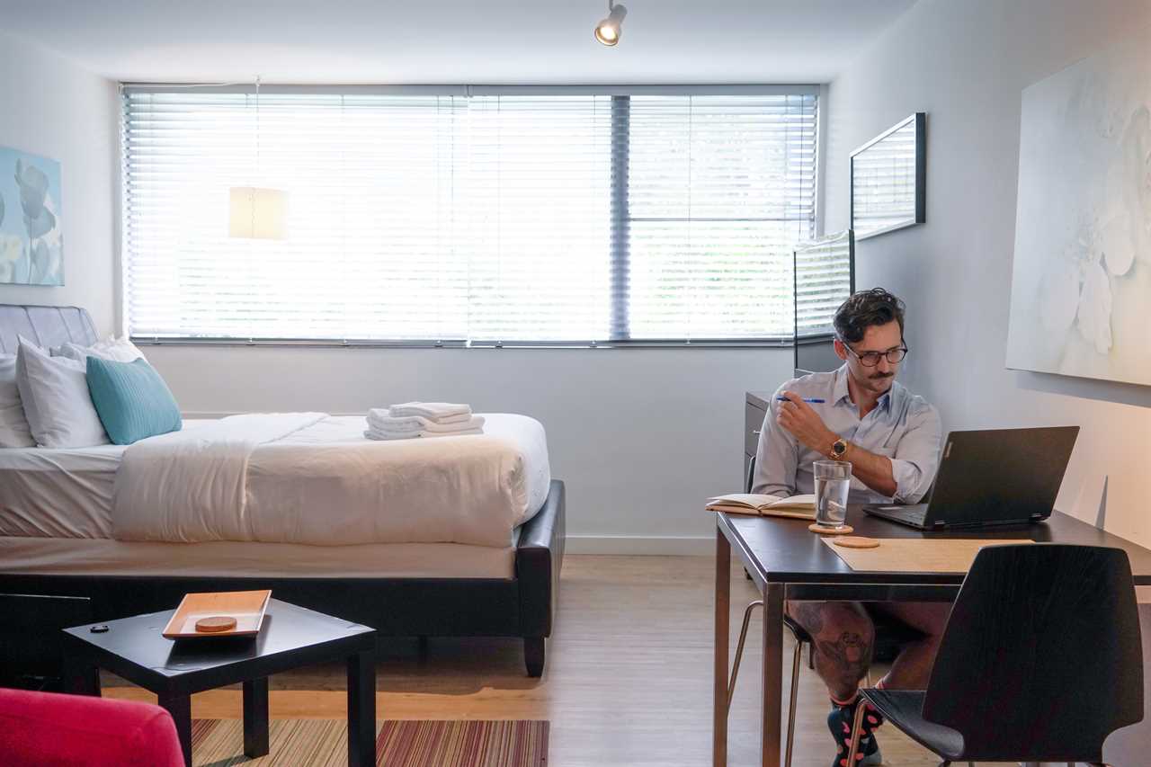 Each Cool Classic Studio includes a fully equipped kitchen, premium bedding, fast WiFi, and a large Roku HDTV for streaming matches. Weekly cleaning with fresh linens, utilities, and one free parking space are included. Strong A/C and blackout curtains ensure a comfortable stay during Atlanta's summer heat.