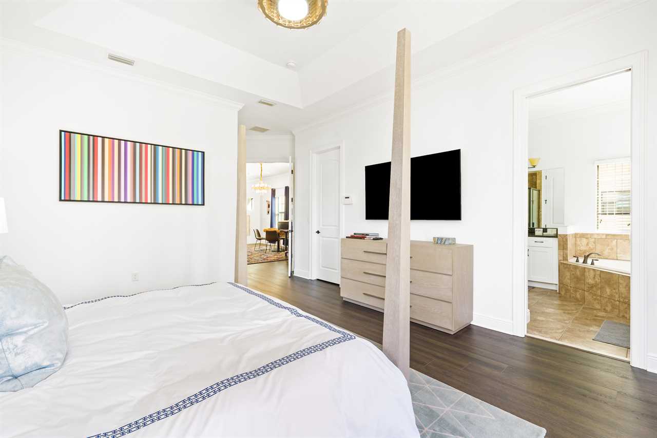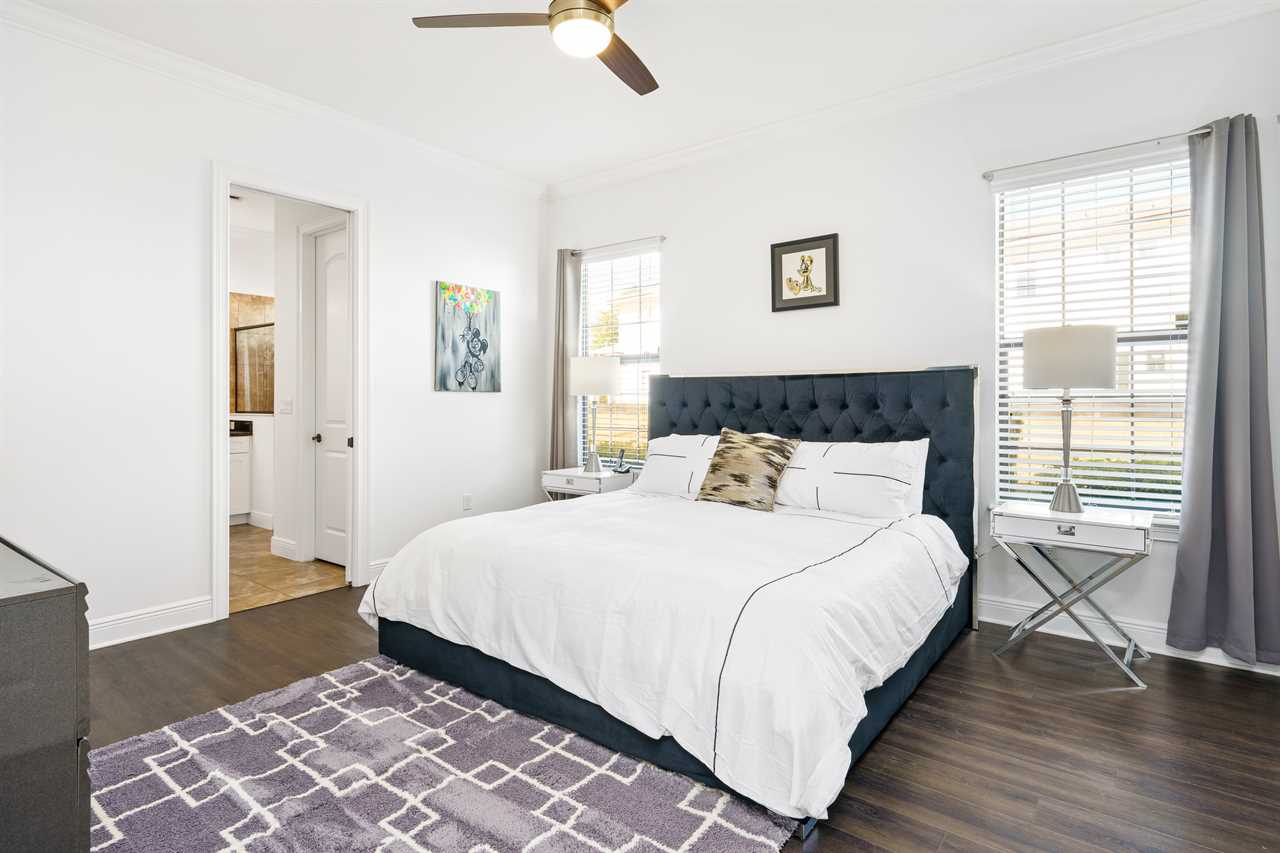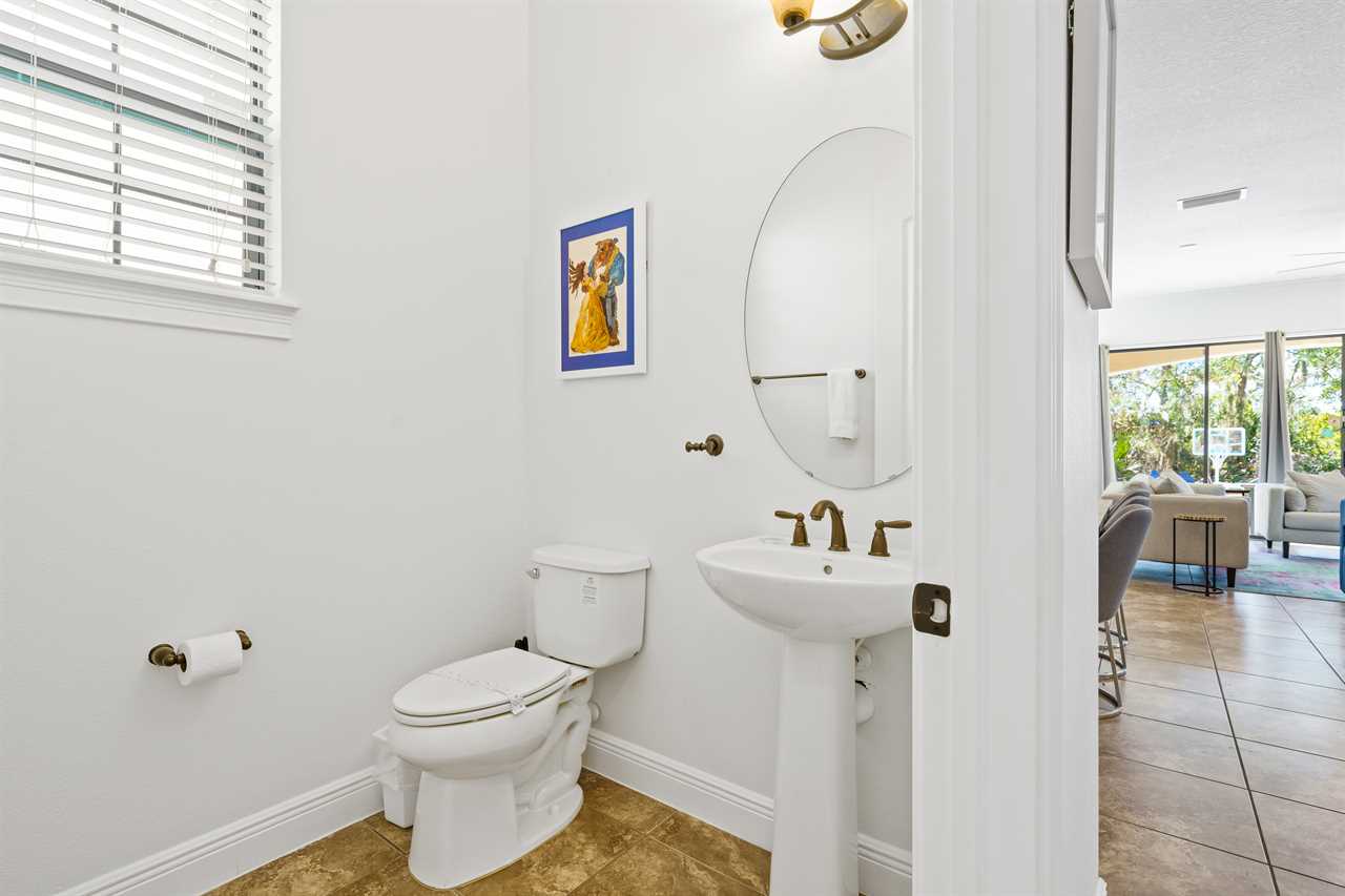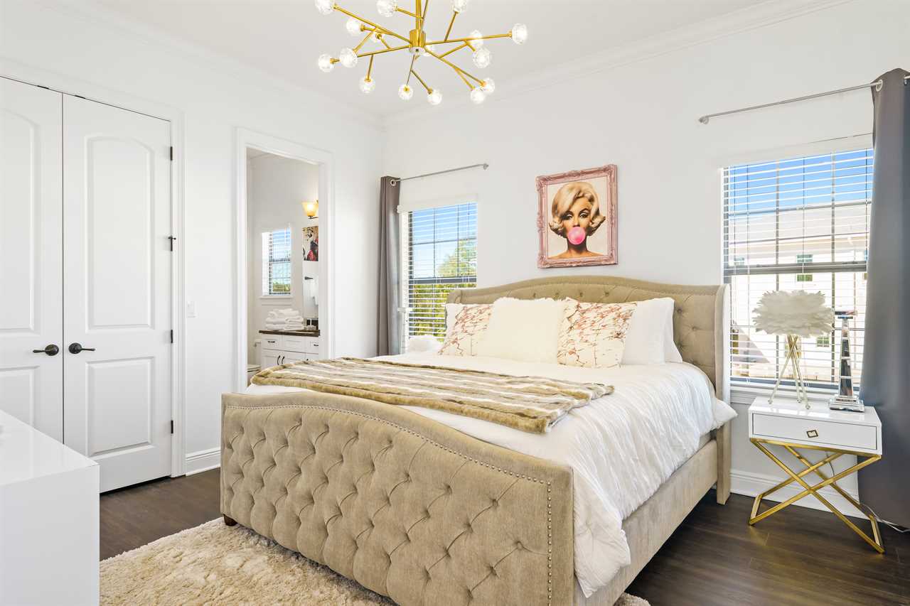 The large Master bedroom includes an oversized soaking tub and overlooks the crystal-clear swimming pool, as well as a nature preserve from its private balcony; the Hollywood-themed room brings comfort, class, and glamour to the most discerning of guests. The edgy character room includes luxury design and contemporary vibes infused with unique pop-art interpretations of the world's most famous mouse; the superhero room includes custom-built bunk beds, a tube slide, mind-blowing wall murals, and an authentic 7-foot tall superhero statue; and the wizard room includes a custom-build castle bunk-bed set-up, double slides out of the top bunks, epic wall murals, custom lighting and more!