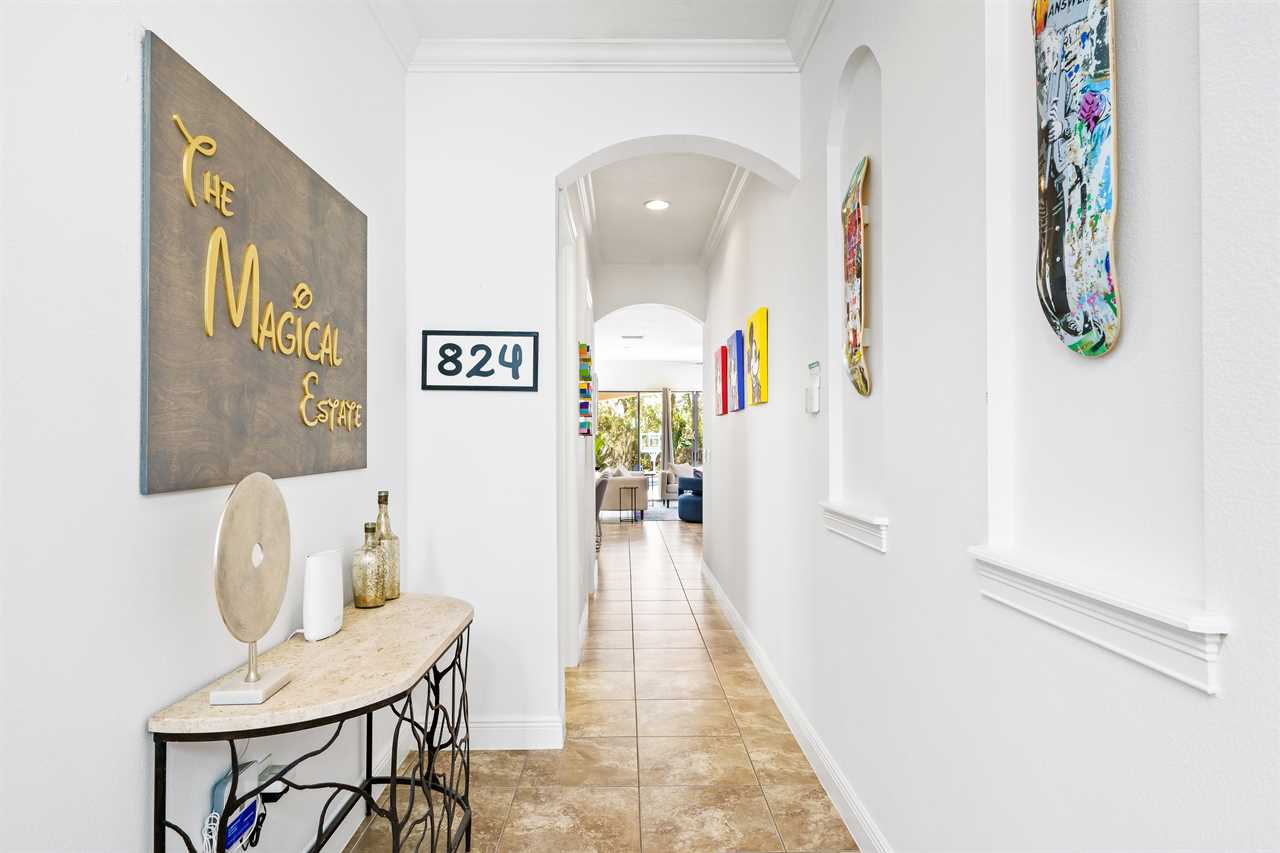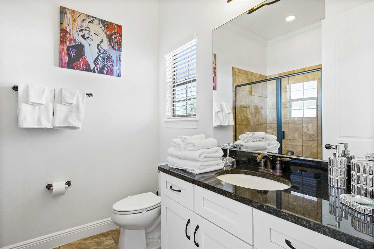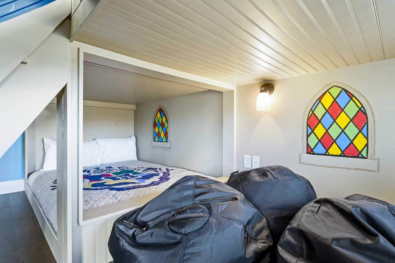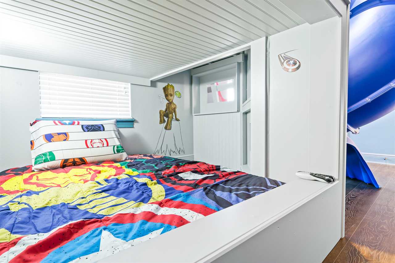 The Magical Estate is a 5 bedroom (all en-suite), 3,200 sq foot treasure that features countless activities for all ages! The private pool/spa and spacious pool deck include plenty of lounge chairs and countless games and activities. This includes pool basketball, cornhole, and larger-than-life ConnectFour! The outdoor kitchen and oversized dining/seating include an outdoor TV, the on-site Las Vegas-themed casino, and a lounge for adults featuring poker and token-based slots. the state-of-the-art arcade and game room, the next-level wizard, and superhero-themed rooms including 3 different commercial playground quality slides, and an unparalleled pop art collection that fills the walls, are just a few of the features that set this home apart! There's even an on-site laundry room with brand-new machines for your convenience.