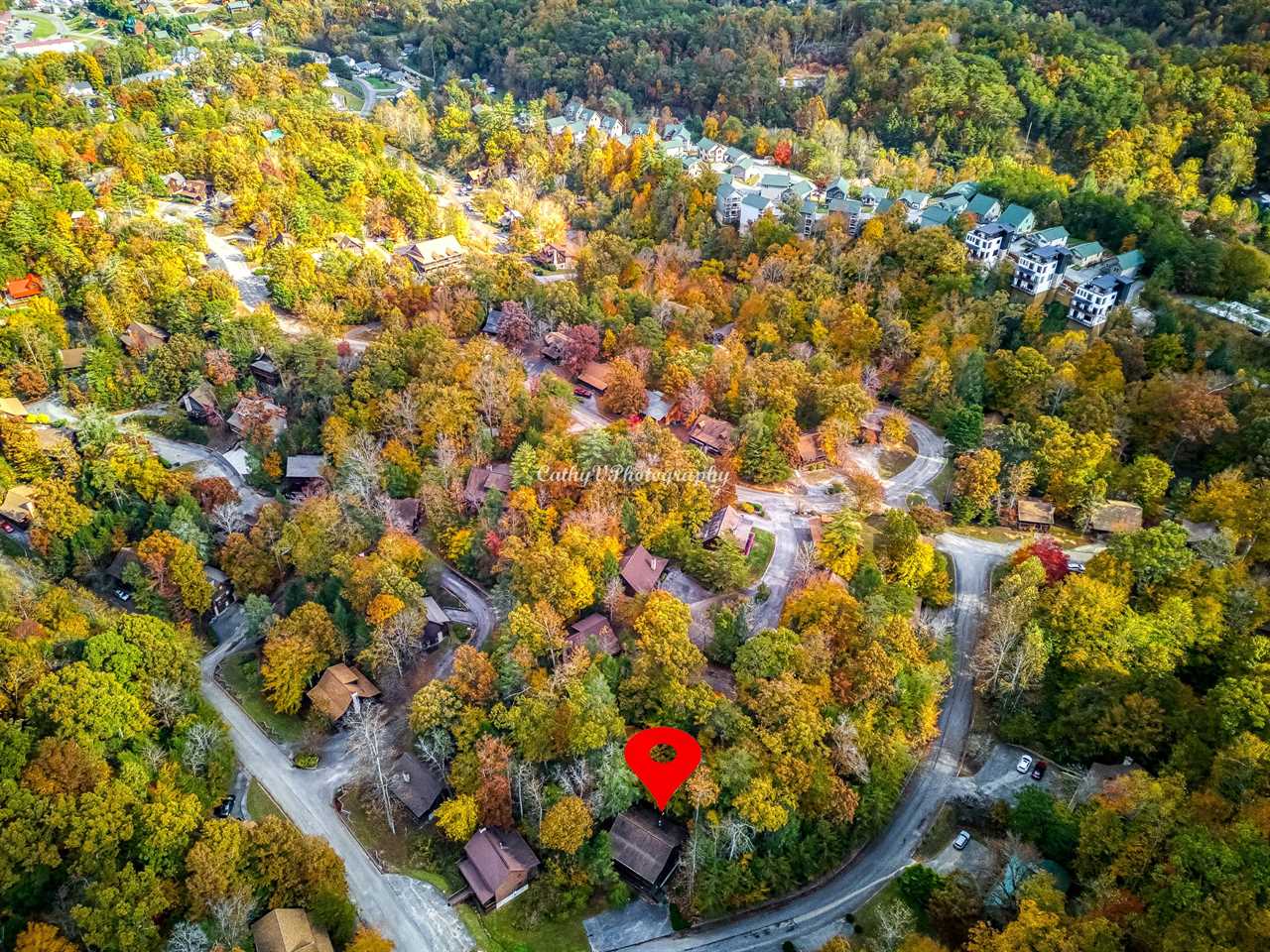 Enjoy resort-style amenities including a seasonal swimming pool and clubhouse access. Inside, the cabin offers a fully equipped kitchen with seating for 8, a game room, and spacious living areas with large Smart TVs in every room. Step outside onto the expansive decks perfect for gathering, grilling, or relaxing in the private hot tub while taking in the mountain air.