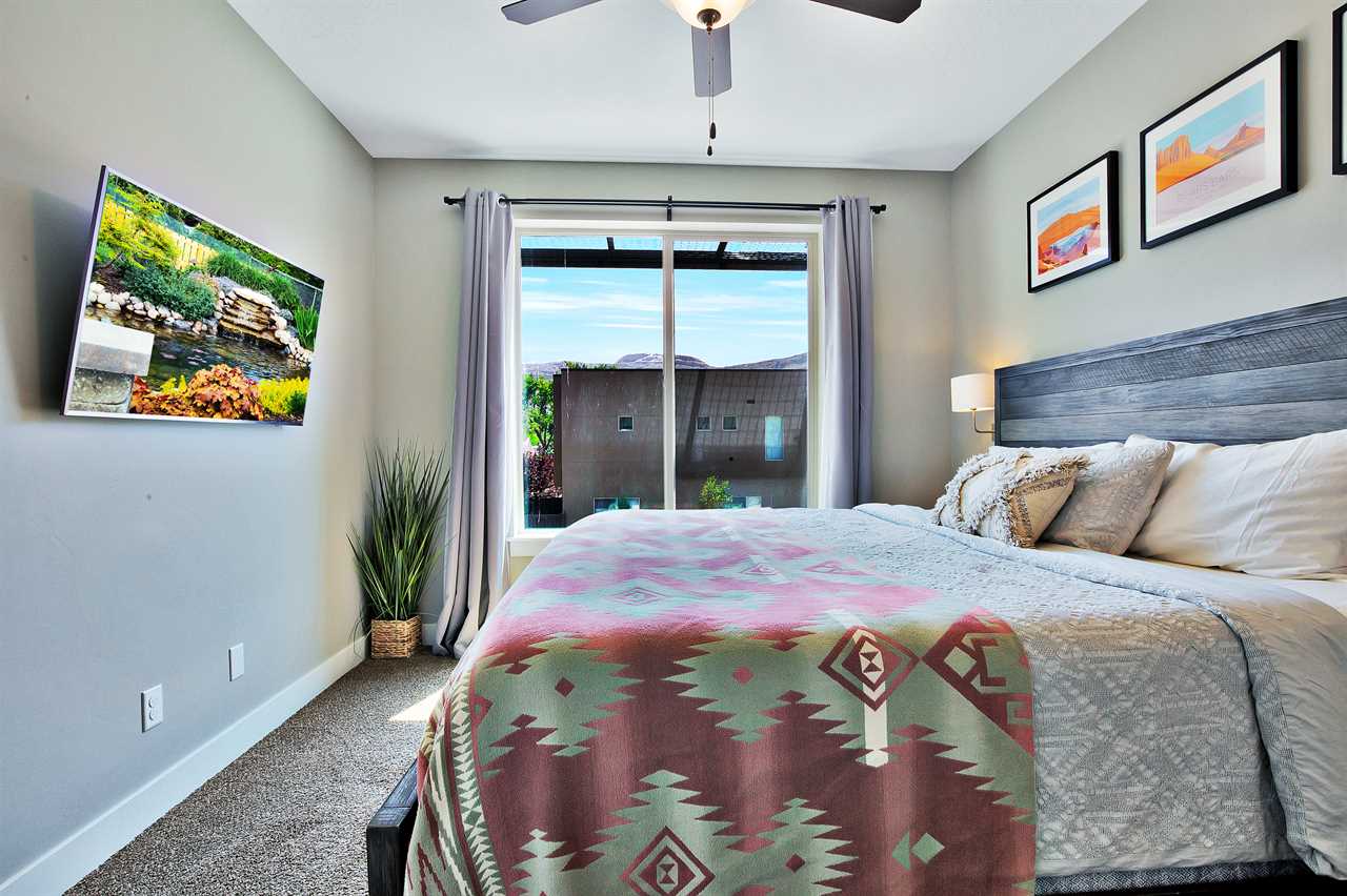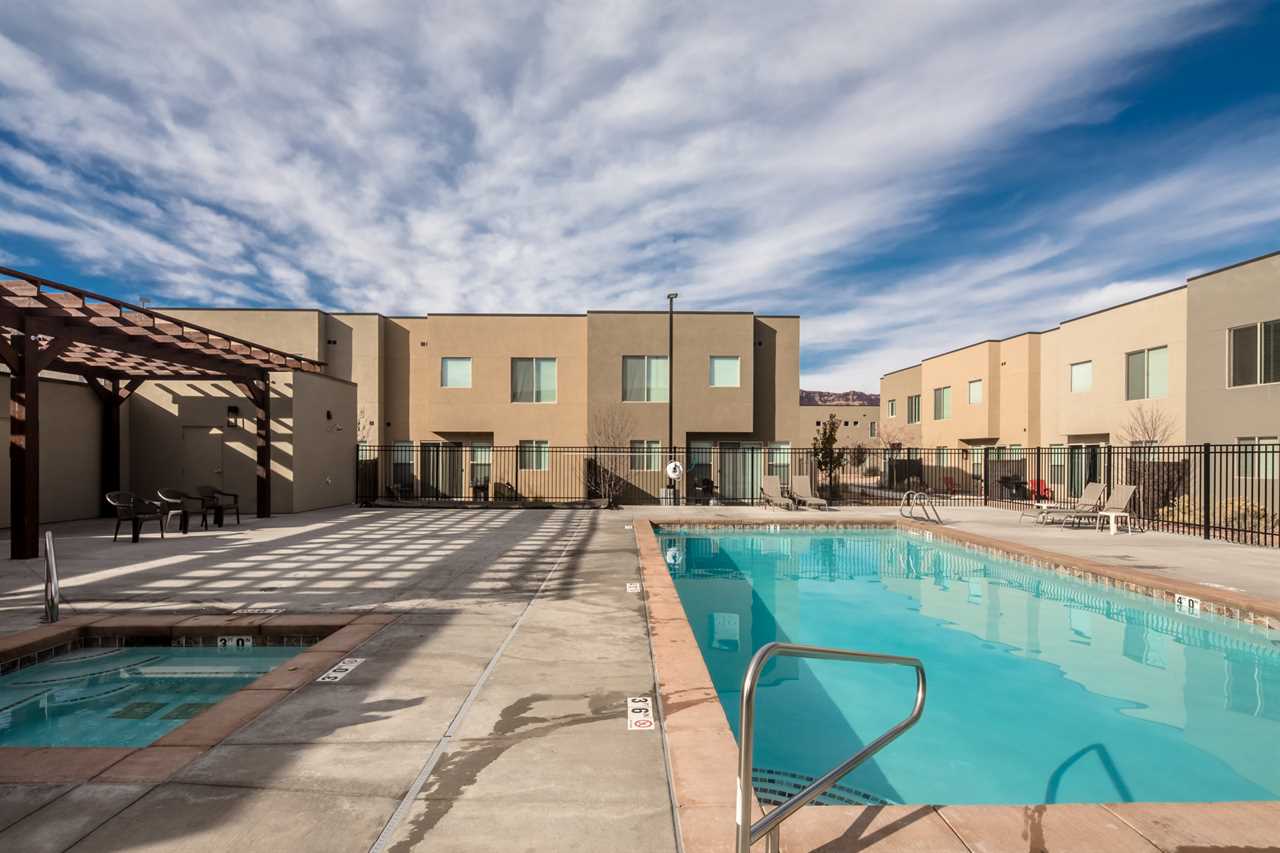 Outside, you're surrounded by landscaped grounds and a great view of surrounding Moab with access to the community pool and spa. These vacation rentals in Moab Utah are just a few blocks from downtown, and a short drive to various indoor and outdoor activities, including Arches National Park, Canyonlands National Park, and Dead Horse State Park, allowing you to experience the ultimate vacation in Moab.