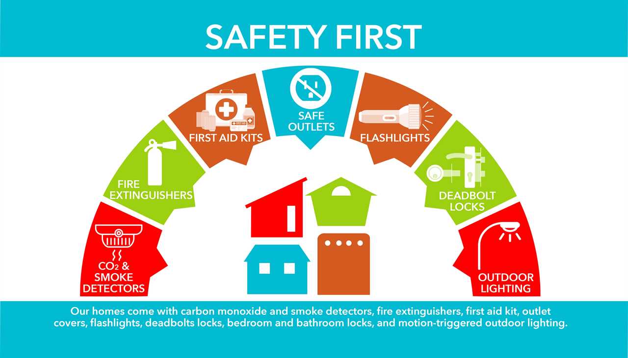 Our homes are equipped with carbon monoxide and smoke detectors, fire extinguishers, a first aid kit, outlet covers, flashlights, deadbolt locks, and motion-triggered outdoor lighting.
