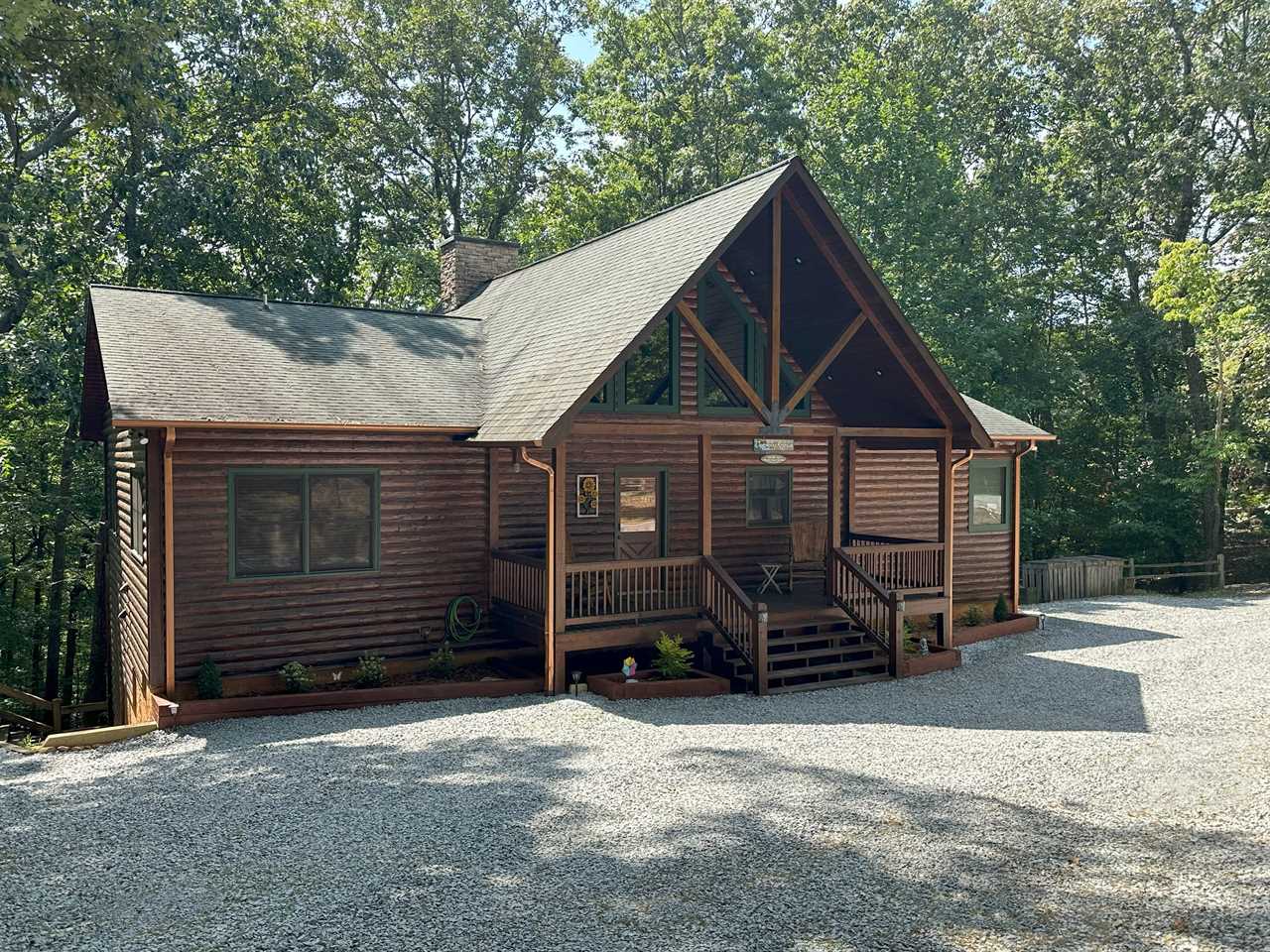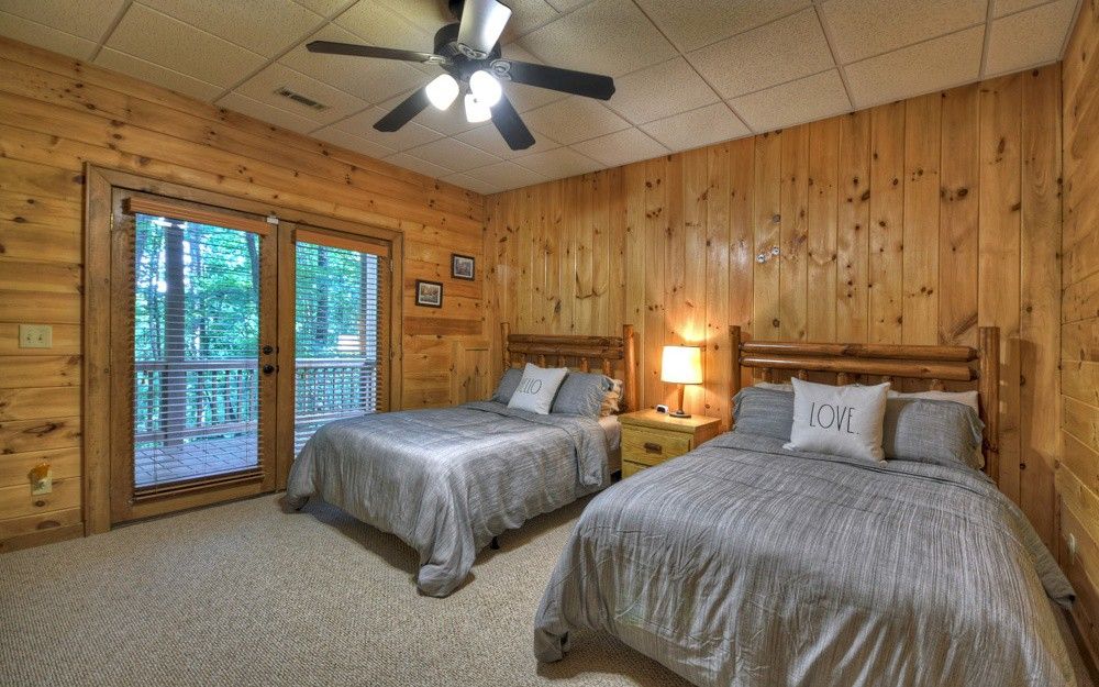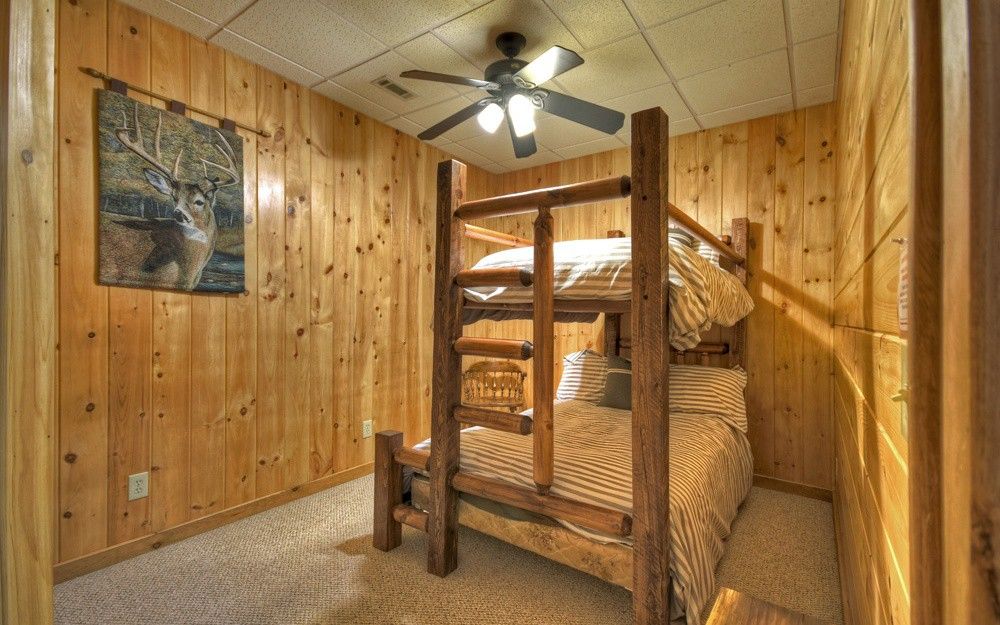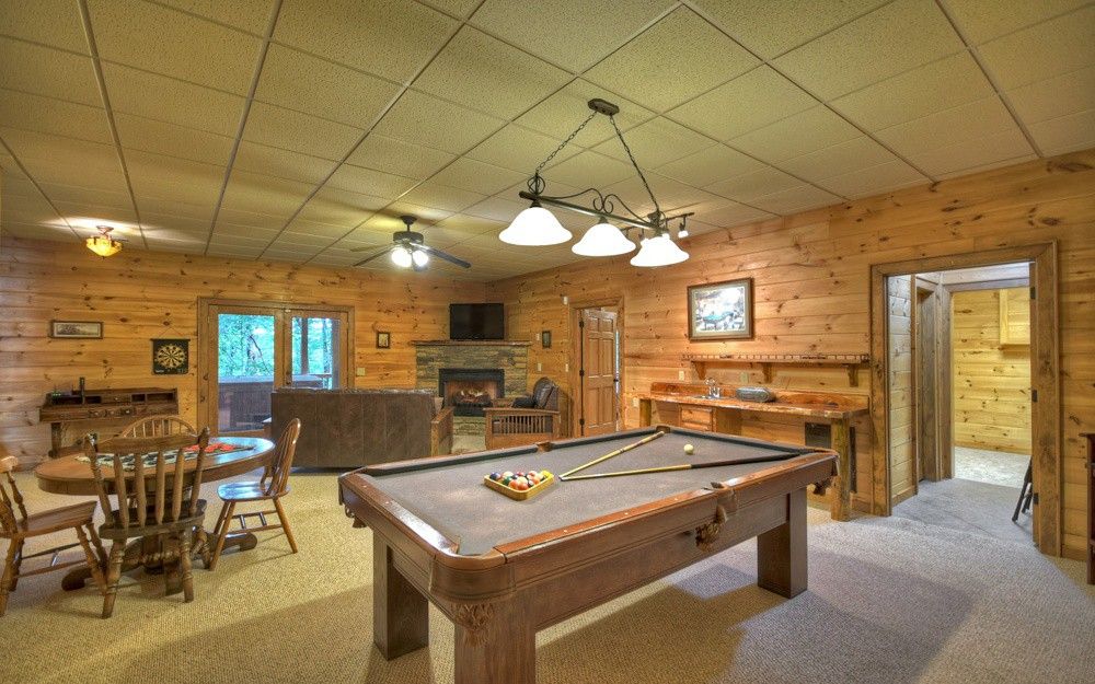 DOGWOOD RETREAT - **Spacious Cabin** Surrounded by beautiful oak trees with dogwoods scattered in, this 6-bedroom 3-bath cabin will accommodate up to 13 guests. The main level of the cabin offers 3 bedrooms one with a King which we call the Master and has a King bed with adjoining bathroom with Shower and Jacuzzi Tub, the other 2 offers Queen beds with a bathroom to share. The downstairs area will give you a large family room with another gas log fireplace and a Flat screen TV with a Pool Table for enjoying your family time. There are 3 more bedrooms with one room containing 2 double full beds another with a Queen and the 6th bedroom has a Bunk Bed which has a full bed on the bottom with the bunk above. There is a bathroom there to be shared with these bedrooms. Dogwood it a fantastic place for church retreat groups or for your summer rafting trips. The Ocoee River is located only minutes away from the cabin where you can enjoy a day on the river with Whitewater Rafting. The easy access paved community offers beautiful mountain views around. When you enter the front door, you are welcomed by the beautiful stone fireplace with gas burning logs. There is seating for 8 at the dining room table with extra seating at the bar stools. The fully furnished kitchen is stocked with everything you need to prepare your family meals. Park Style Charcoal Grill located in the Firepit area is provided, where you can grill your hamburgers or Steaks. Bring your own Charcoal. The large decks on the back of the cabin offer a peaceful place, you can also enjoy the Beautiful Fire Pit Area where your family can roast Hot Dogs or make s'mores' as you enjoy family time around a roaring fire. Enjoy reading in the quietness of the surrounding woods or just watching and listening to nature at this peaceful cabin. Call to today for total quotes for your groups and let us help you plan your family retreat at Dogwood Retreat.