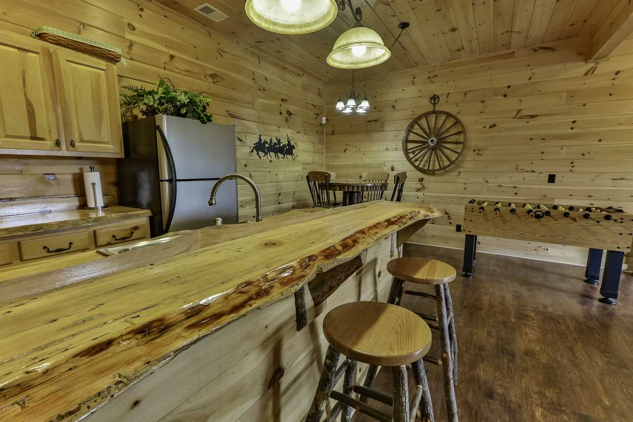 Looking for a place you can totally relax in luxurious style? This cabin welcomes you with a western motif throughout the cabin. Many western and country accents abound in every room. The cabin will sleep 7 to 8 guests with 3-Bedrooms and 3-Baths and a futon in the family room. Fully Equipped Kitchen, including a Ninja Coffee maker and a fun filled family room with a Pool Table, Foosball, Play Station II, Game Table, and Kitchenette area. Enjoy the 42" Flat screen TV in the Living Room and flat screen also in the Family Room. Wireless internet also available. Relax on the outside deck in the Hot Tub or sit by the fire on the covered deck. Cook up your favorite Steak or Hamburger on the propane gas grill provided at the cabin. Enjoy the 2 indoor gas log fireplaces also. Crockett Trials is conveniently located minutes from the historic downtown Blue Ridge and the quaint town of Ellijay Georgia, which is made famous by for their October Apple Festival. The cabin is less than 2 miles from Hwy 515. Thousands of acres of national forest property will give you plenty of wildlife to enjoy and very close access to the nearby Benton MacKaye Hiking Trail. Don't miss your chance to enjoy the beautiful North Georgia Mountains from this wonderful cabin. Call today and book your stay.