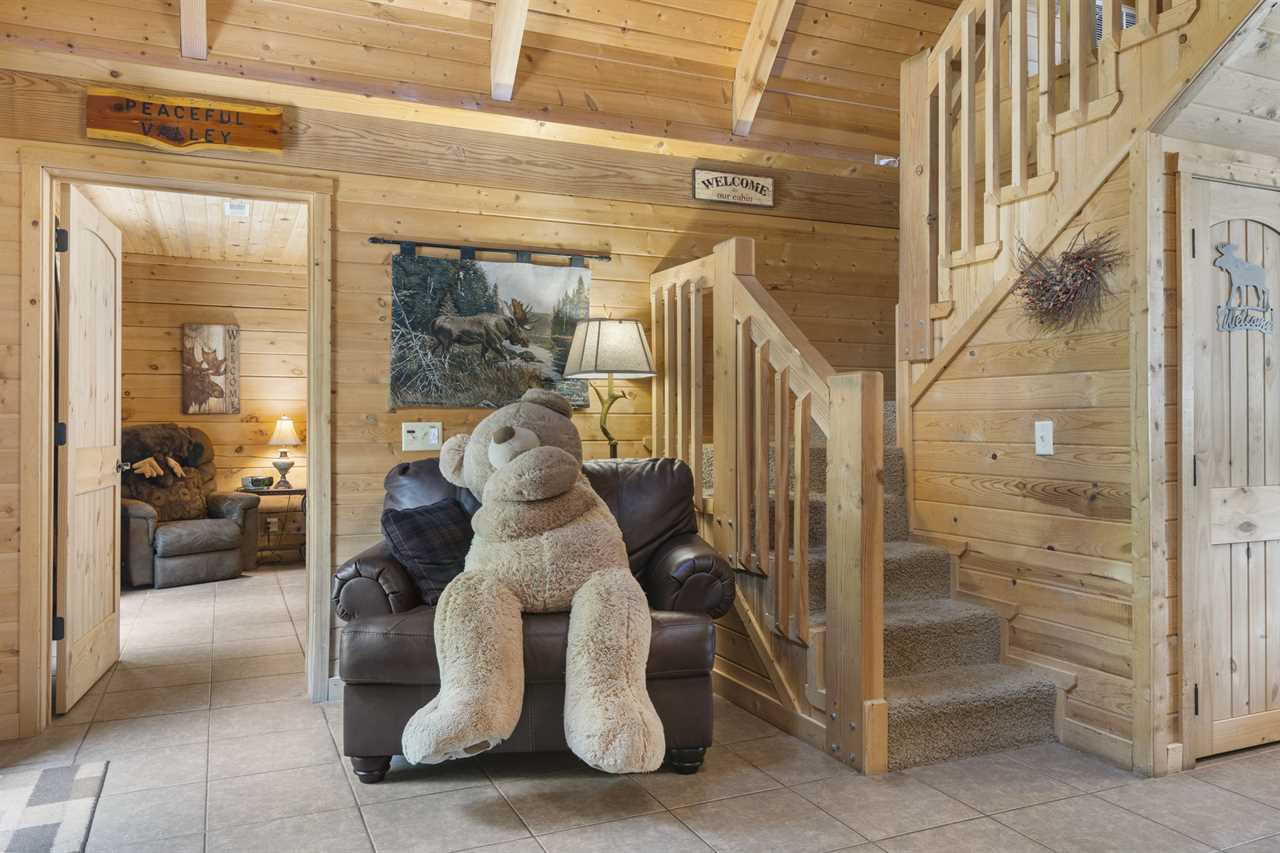 Outside, Caribou Canyon's back deck runs the length of the cabin and overlooks the surrounding woods and valley. It is accessible from the Great room, Master Suite, or Queen bedroom. This is also a great space for your furry friends to get some exercise while you fire up the grill and dine out al fresco! Afterward, relax in your private outdoor hot tub or sit and enjoy the view. This is a perfect place to start your day with a cup of coffee or wind down your evening with a glass of wine while counting fireflies or stargazing up at a clear Ozarks night sky. What are you waiting for? Come Make Memories and Start Traditions with your family and friends!