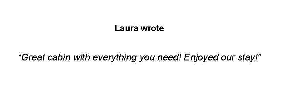 One of our recent guests, Laura, wrote: "Great cabin with everything you need! Enjoyed our stay!" This was an amazing place to stay! It was clean and had everything we needed for the week! We stayed for 10 days and that wasn't near enough! The beds were comfortable, and the Jacuzzi tub and hot tub were amazing! Just what we needed to unwind! The playground right next door was perfect for our little one and the loft perfect for the teenagers! Thank you for keeping such a nice spot for people to come and relax! We will be booking here again!