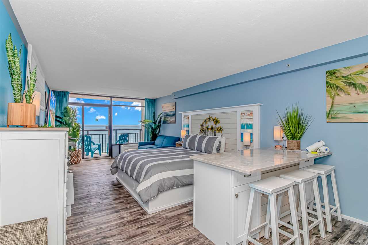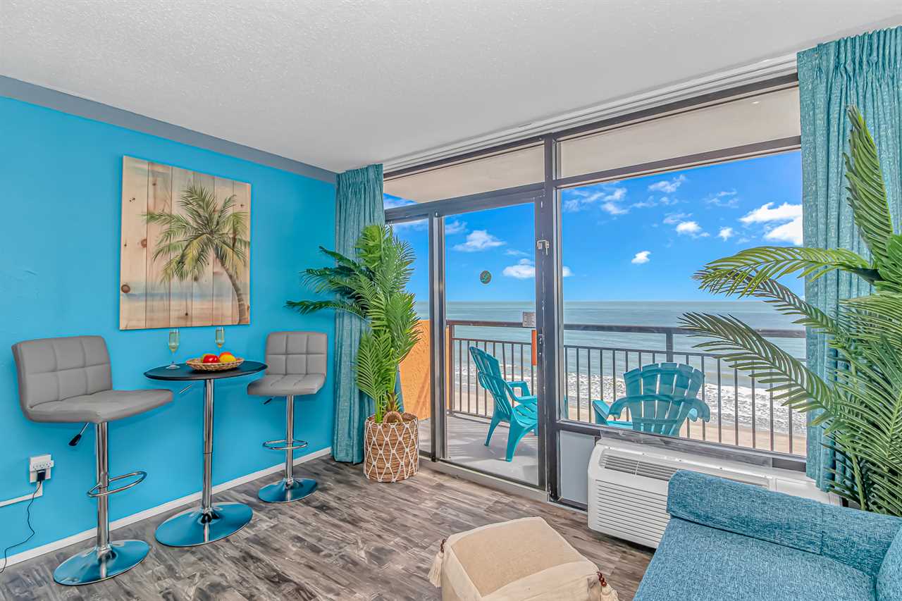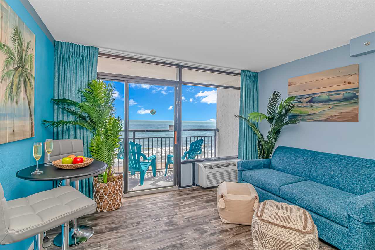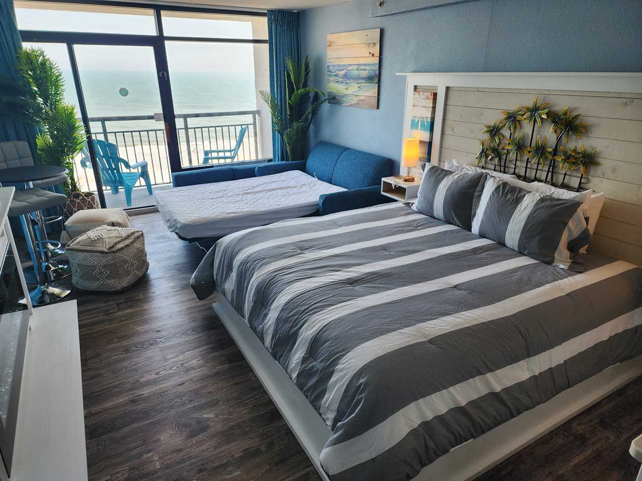 The search for your next vacation stops here! Check out this 8th-floor, direct oceanfront condo at the Landmark Resort in Myrtle Beach. This condo is fully furnished with 1 king bed and 1 full-size sleeper sofa, comfortably accommodating up to 4 guests. Guests enjoy their own private balcony, perfect for relaxing and taking in the ocean views.