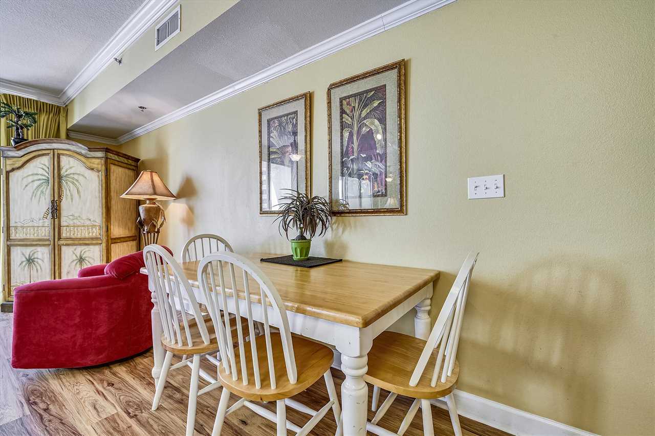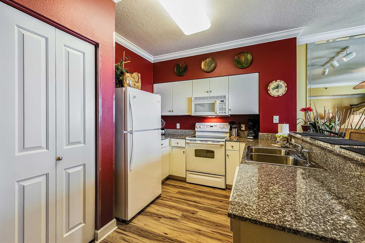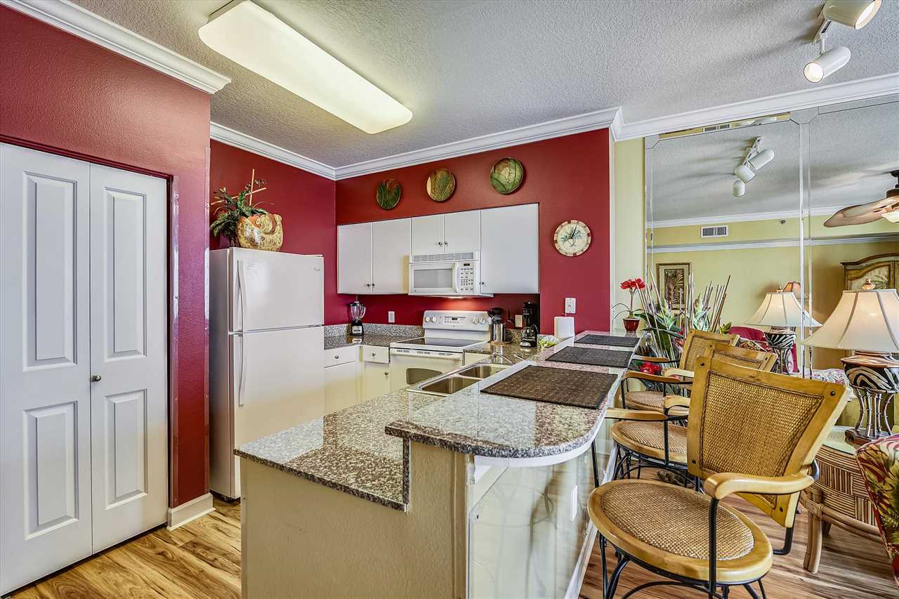 Use the new kitchen appliances, like the microwave, stove, oven, or coffee pot to serve breakfast in the morning as you watch the sunrise, make snacks for an afternoon snack, or cook a mouthwatering seafood dinner and sit outside on your private balcony and watch the sun go down over the waves.