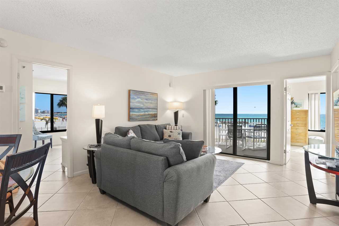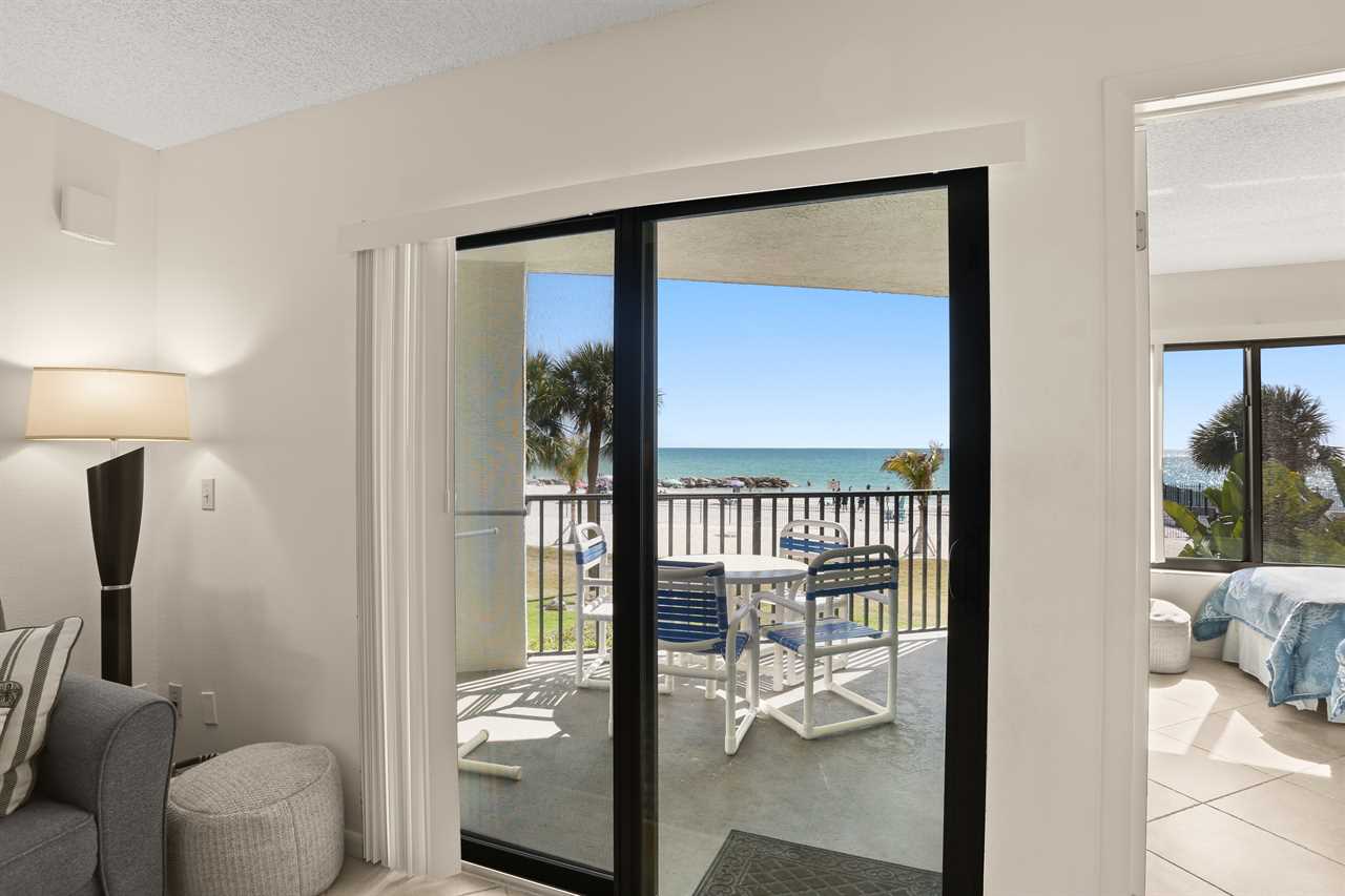 Welcome to Unit #107 at Caprice Resort, a beautifully updated 2-bedroom, 2-bathroom corner condo offering panoramic Gulf views and water vistas from both bedrooms. Located directly on St. Pete Beach, this spacious unit is perfect for couples or small families seeking a relaxing beachfront getaway with all the comforts of home.