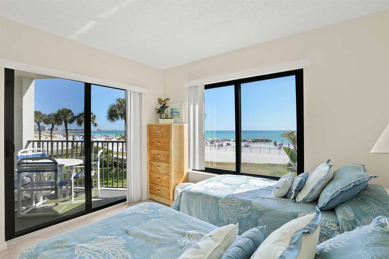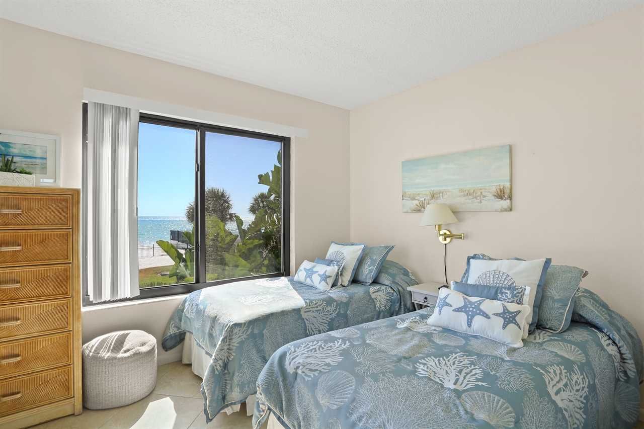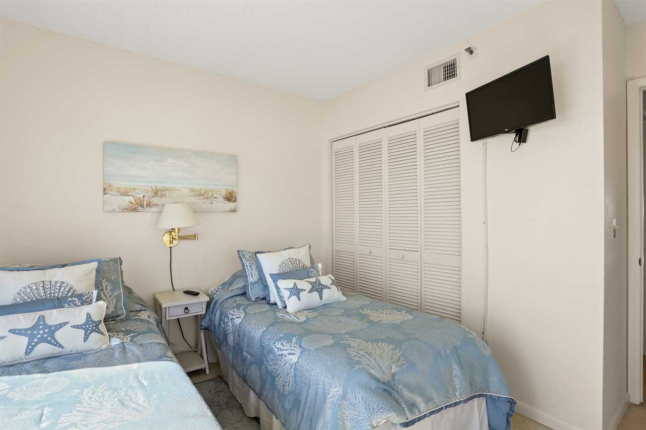 - Second Bedroom β Two twin beds, 24β flat screen TV, balcony access, water view