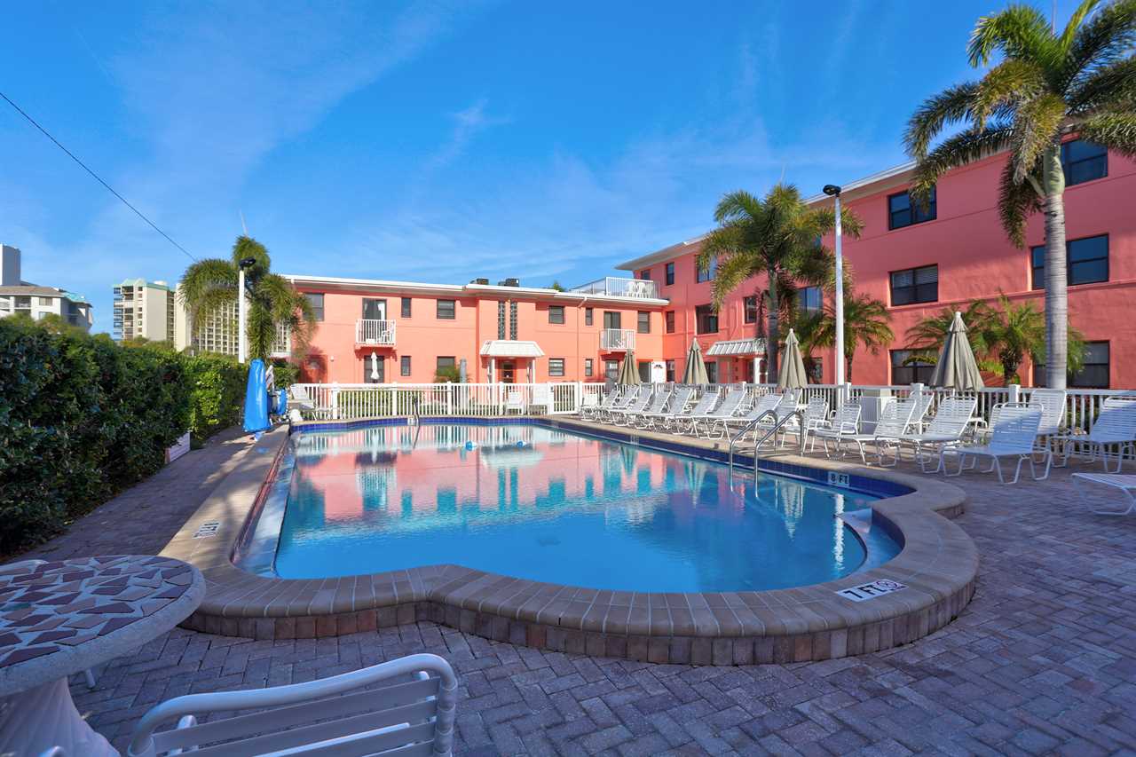Gulf Winds Resort is nestled in a quieter section of St. Pete Beach, offering a peaceful setting while still being close to local shops, restaurants, and the historic Corey Avenue District. The property includes a heated swimming pool, BBQ grills, laundry facilities, shuffleboard court, and outdoor gathering areas — perfect for enjoying Florida's sunny weather.