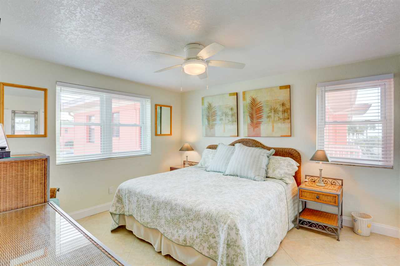 - Master Bedroom: King-size bed, flat-screen TV, beach views