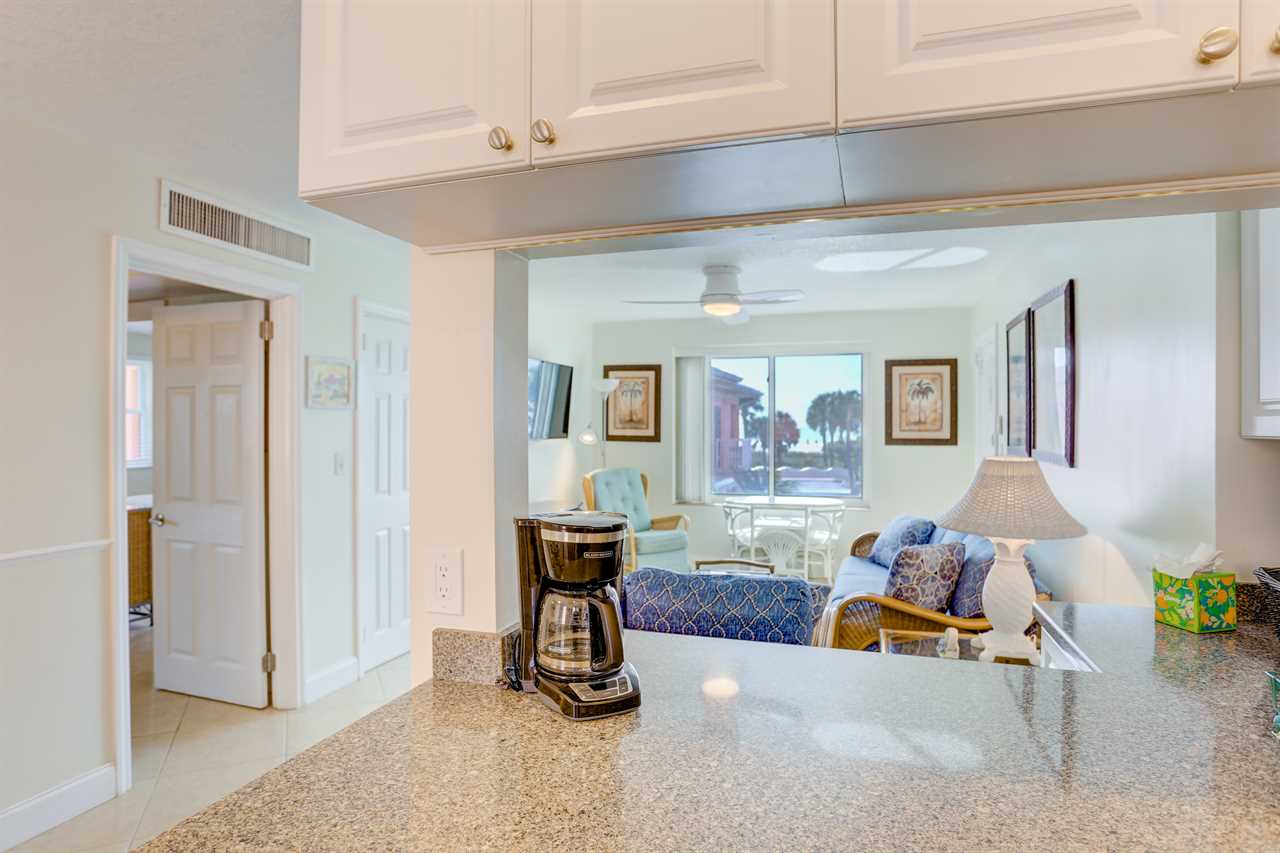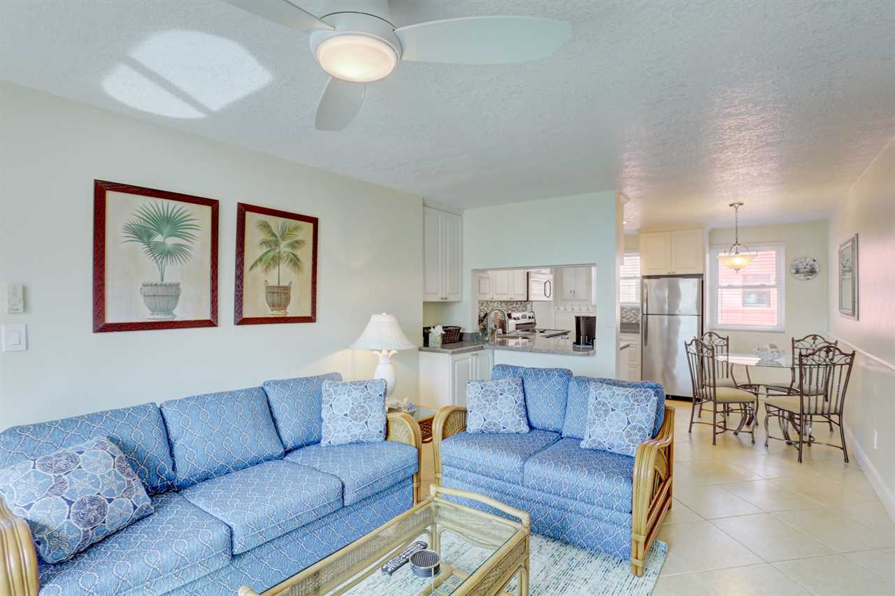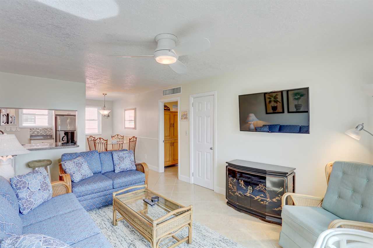 - Living Room: Sleeper sofa, flat-screen TV, and stunning Gulf-facing windows