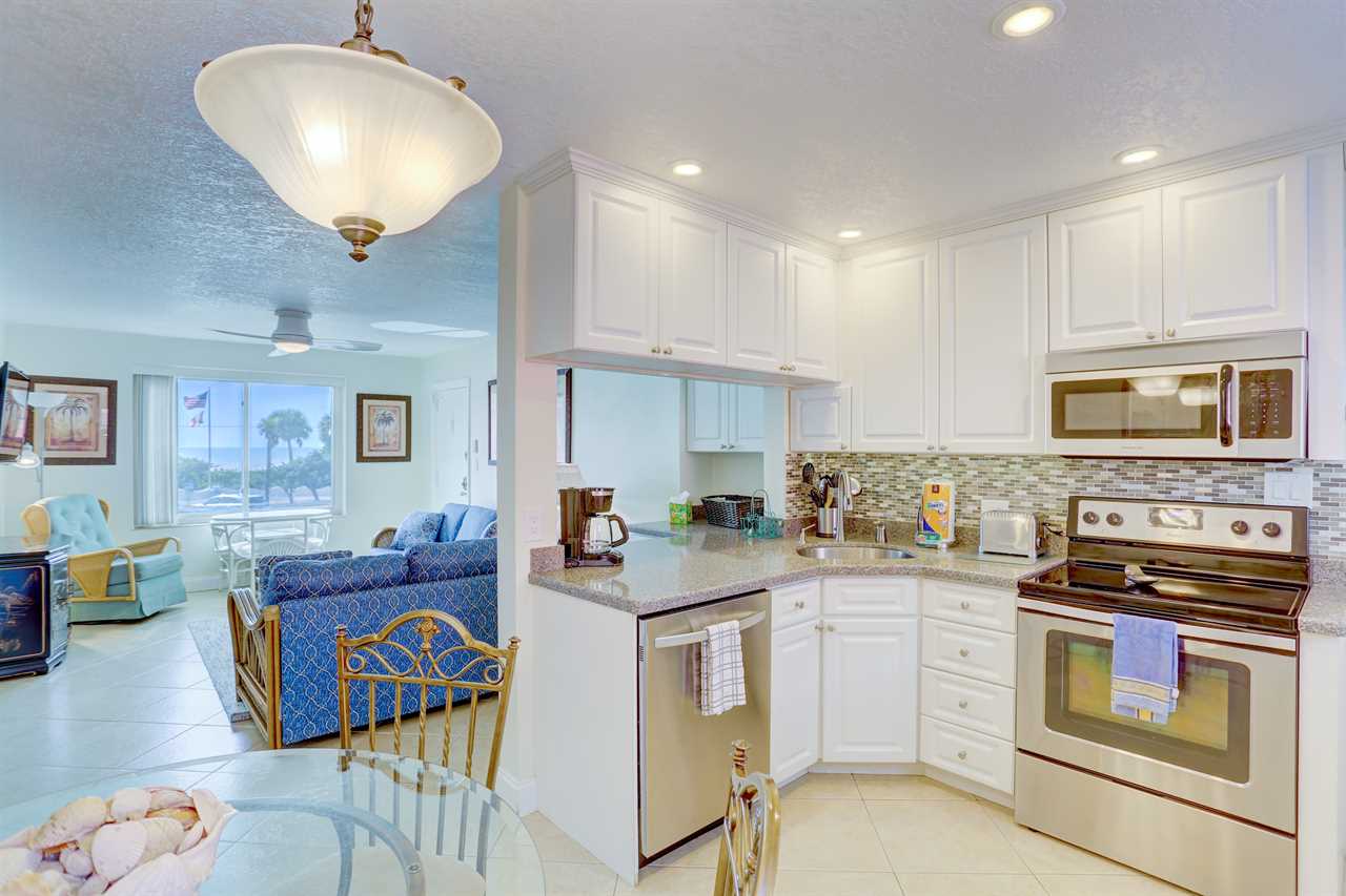 - Kitchen: Granite countertops, stainless steel appliances, and full cookware