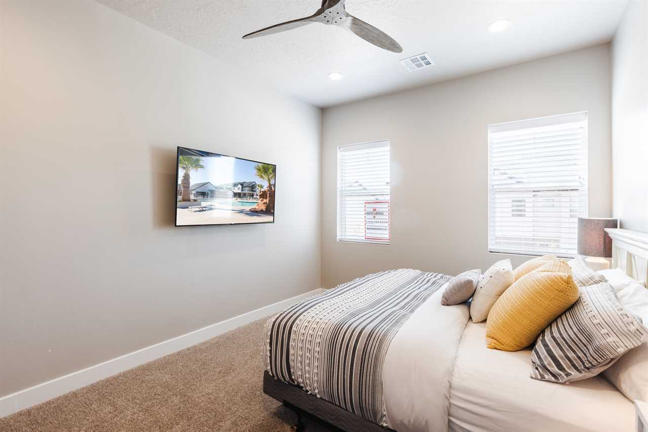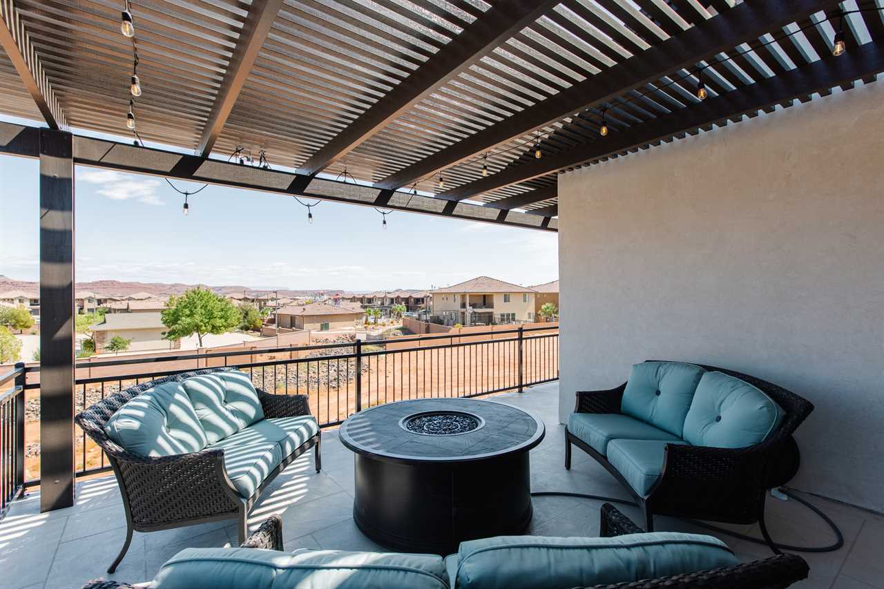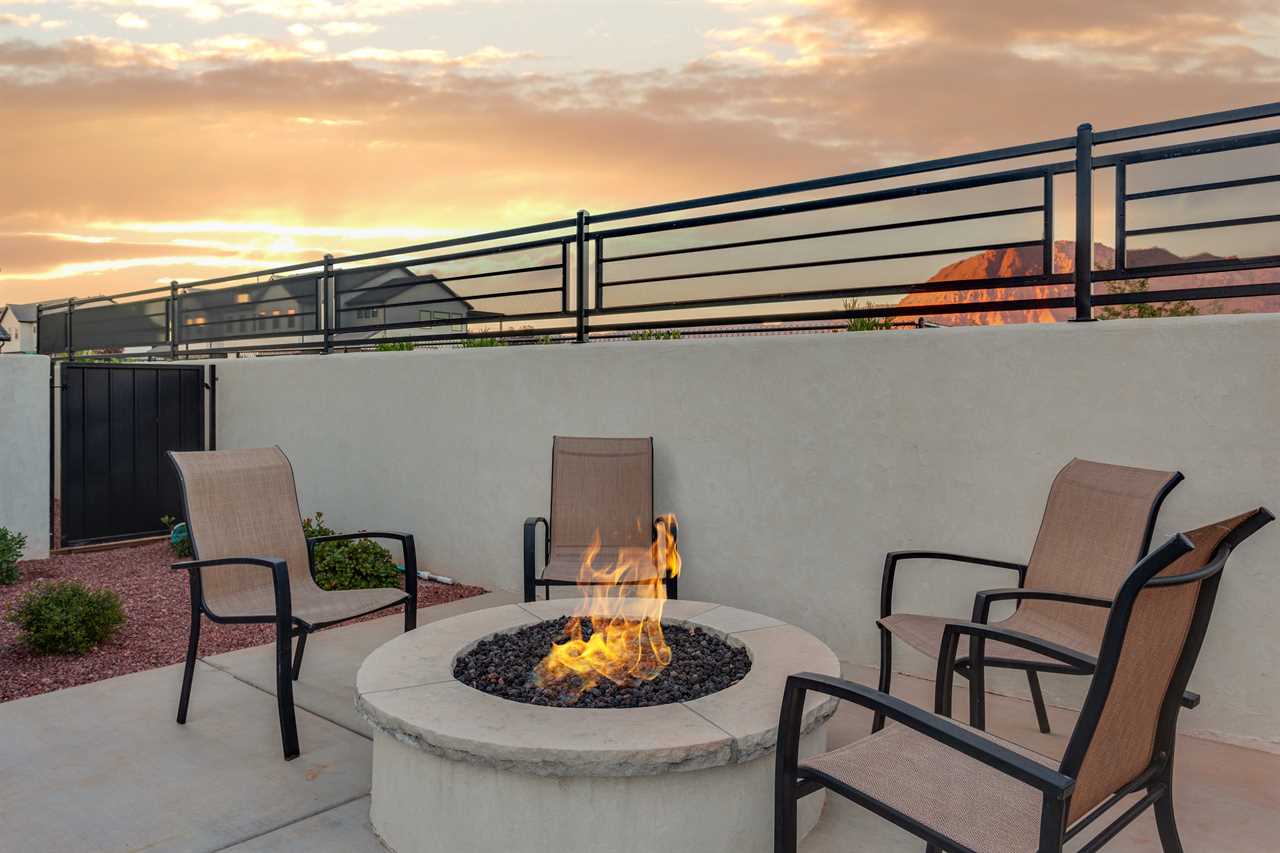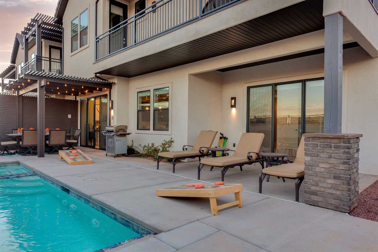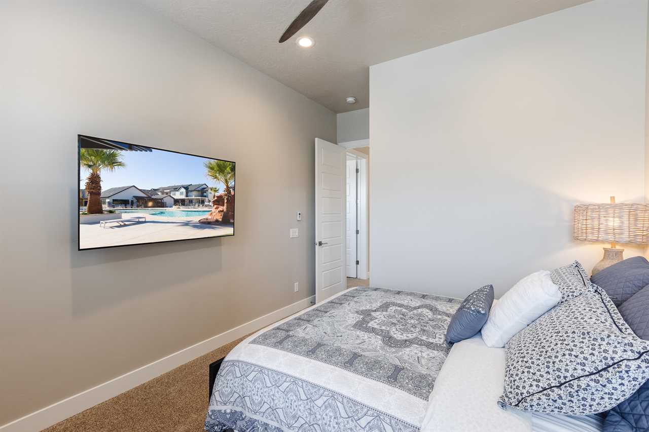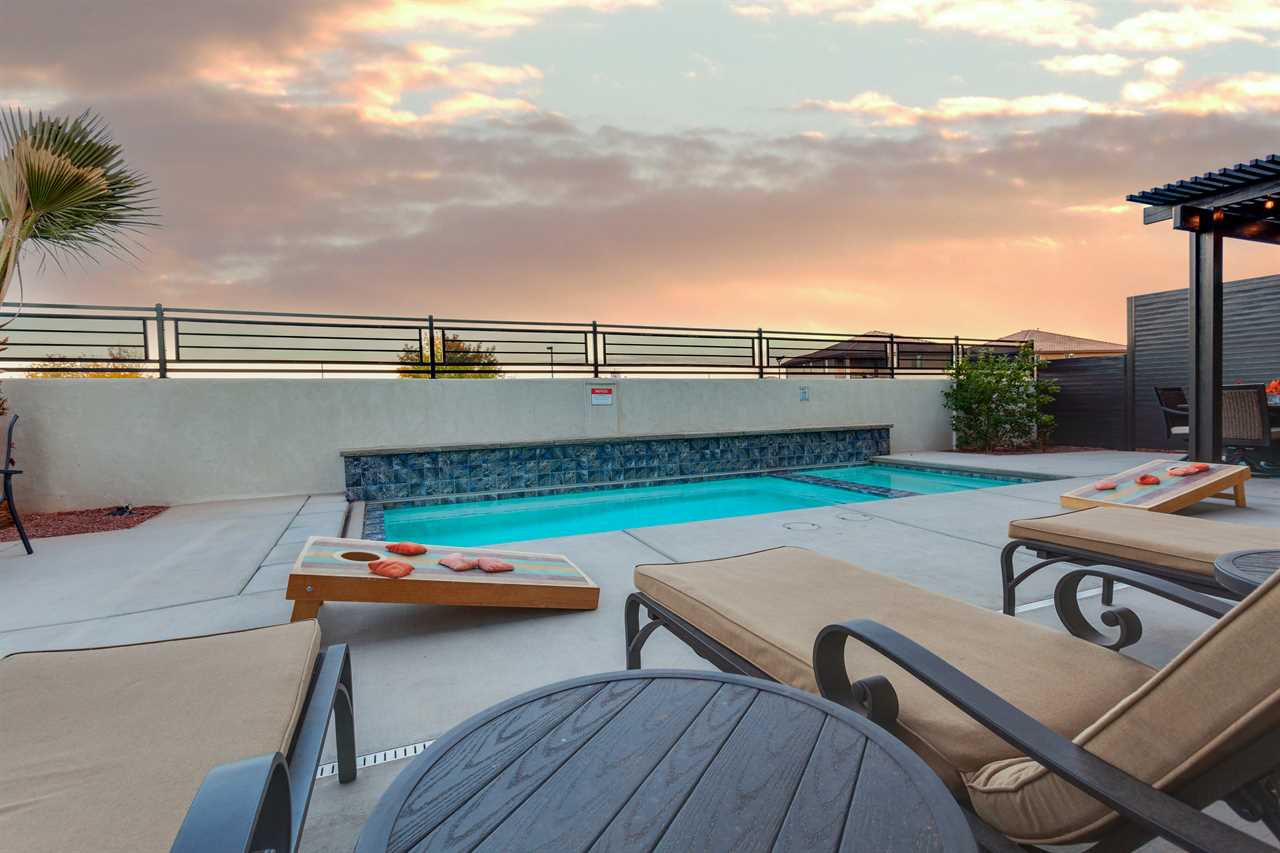 The Lookout in Ocotillo Springs **Splash Pad unavailable at this time** Spend your next southern Utah vacation at The Lookout in Ocotillo Springs, the perfect place to enjoy the desert sun! This beautiful home features a private pool and spa, as well as two play stations and large TVs in each room, as well as two in the loft and one in the living room! Enjoy the sunshine and desert breeze on your private patio with a refreshing dip in the pool or a delicious lunch on the balcony. As the sun sets, cook some delicious food on the grill and enjoy time with your favorite people! You can relax in front of a fire either from the upstairs balcony under shining string lights, or by the pool at one of two fire pits on the ground floor. Gaze up at the stars from the comfort of the hot tub and then cozy up on the couch in front of one of the TVs for a movie night This elegant 5 Bedroom / 5.5 Bathroom home can comfortably sleep 16 people, or with the use of a pull-out couch bed and roll-away twin beds, fit as many as 20 people to have all of your favorite people with you for your southern Utah vacation! The master bedroom is downstairs, with patio access as well as a large ensuite bathroom and master walk in closet. Enjoy a soak in the large tub, or a refreshing shower after a day of exploring the local scenery! Upstairs there are 2 more King suites, as well as a queen suite and a bunk room for the kids! The bunk room features two 3-tier twin bunk beds, as well as a twin daybed with a trundle, so you can fit as many as 8 people comfortably in one room! Spend your day exploring southern Utah at local destinations like Sand Hollow, Tuacahn Center for the Arts, and Snow Canyon all within a short trip from your new favorite vacation destination, The Lookout in Ocotillo Springs! **Private Pool Heated Upon Request Bedding: King – Ensuite Bathroom King – Ensuite Bathroom King – Ensuite Bathroom Queen – Ensuite Bathroom 2 twin trio bunk beds, 1 twin bed w/ trundle – Shared Bathroom Additional Bedding: 2 Roll-away Twin Beds, Queen Pull-Out Couch Amenities Highlights: Private Pool Private Spa 2 PS4s Smart TVs in each room 3 Fire pits Balcony Grill Resort Amenities: Resort Pool & Spa Splash Pad *Splash Pad closed, but Gubler Park, just 2 minutes away by car, offers its own Splash Pad and plenty more activities for you to enjoy!* Pickleball Courts Clubhouse (pool table, game system, ping pong, and outdoor fireplace) Additional Street Parking *Please inquire for parking rules and regulations prior to booking.