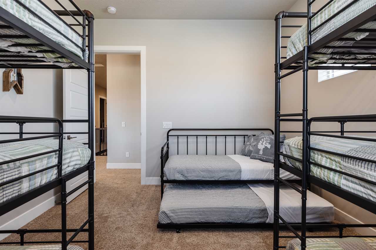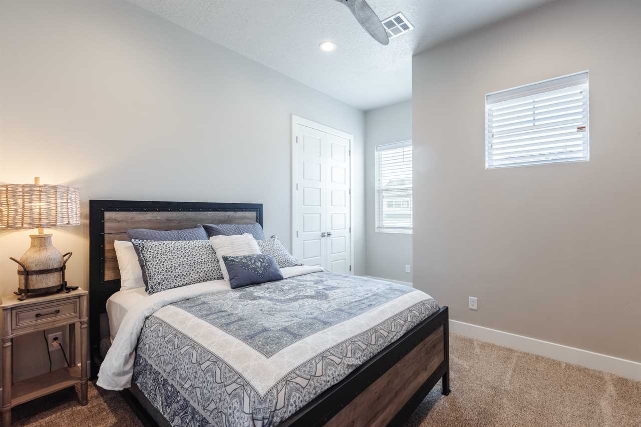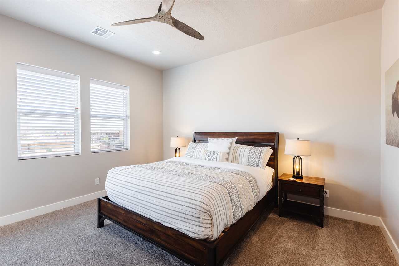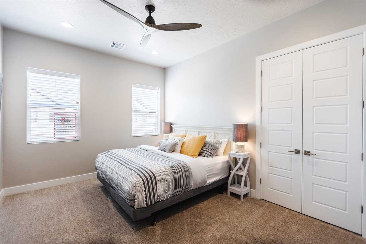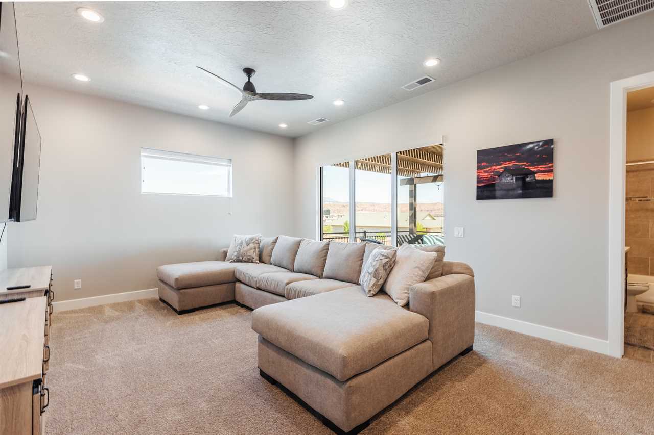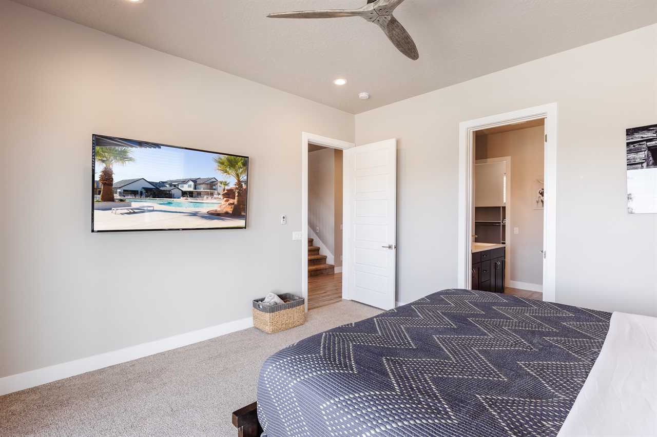 The Lookout in Ocotillo Springs **Splash Pad unavailable at this time** Spend your next southern Utah vacation at The Lookout in Ocotillo Springs, the perfect place to enjoy the desert sun! This beautiful home features a private pool and spa, as well as two play stations and large TVs in each room, as well as two in the loft and one in the living room! Enjoy the sunshine and desert breeze on your private patio with a refreshing dip in the pool or a delicious lunch on the balcony. As the sun sets, cook some delicious food on the grill and enjoy time with your favorite people! You can relax in front of a fire either from the upstairs balcony under shining string lights, or by the pool at one of two fire pits on the ground floor. Gaze up at the stars from the comfort of the hot tub and then cozy up on the couch in front of one of the TVs for a movie night This elegant 5 Bedroom / 5.5 Bathroom home can comfortably sleep 16 people, or with the use of a pull-out couch bed and roll-away twin beds, fit as many as 20 people to have all of your favorite people with you for your southern Utah vacation! The master bedroom is downstairs, with patio access as well as a large ensuite bathroom and master walk in closet. Enjoy a soak in the large tub, or a refreshing shower after a day of exploring the local scenery! Upstairs there are 2 more King suites, as well as a queen suite and a bunk room for the kids! The bunk room features two 3-tier twin bunk beds, as well as a twin daybed with a trundle, so you can fit as many as 8 people comfortably in one room! Spend your day exploring southern Utah at local destinations like Sand Hollow, Tuacahn Center for the Arts, and Snow Canyon all within a short trip from your new favorite vacation destination, The Lookout in Ocotillo Springs! **Private Pool Heated Upon Request Bedding: King – Ensuite Bathroom King – Ensuite Bathroom King – Ensuite Bathroom Queen – Ensuite Bathroom 2 twin trio bunk beds, 1 twin bed w/ trundle – Shared Bathroom Additional Bedding: 2 Roll-away Twin Beds, Queen Pull-Out Couch Amenities Highlights: Private Pool Private Spa 2 PS4s Smart TVs in each room 3 Fire pits Balcony Grill Resort Amenities: Resort Pool & Spa Splash Pad *Splash Pad closed, but Gubler Park, just 2 minutes away by car, offers its own Splash Pad and plenty more activities for you to enjoy!* Pickleball Courts Clubhouse (pool table, game system, ping pong, and outdoor fireplace) Additional Street Parking *Please inquire for parking rules and regulations prior to booking.