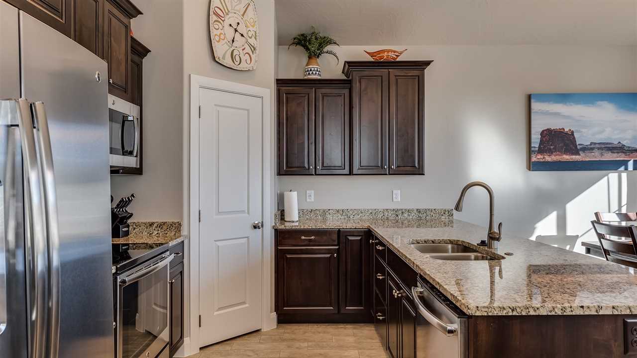 Located across from the pool! This beautiful St. George Vacation Home has been professionally designed and furnished for ultimate comfort. The mattresses are top of the line to ensure that our guests get a good nights rest. The living room has a two couches and flat screen TV to watch some of your favorite movies! The kitchen is fully stocked with all the comforts of home. In addition, the kitchen has granite counter tops and stainless steel appliances.