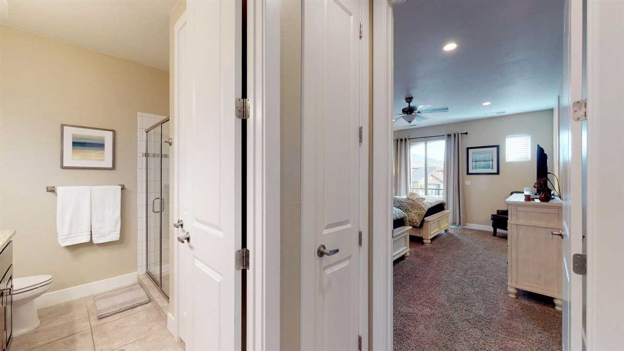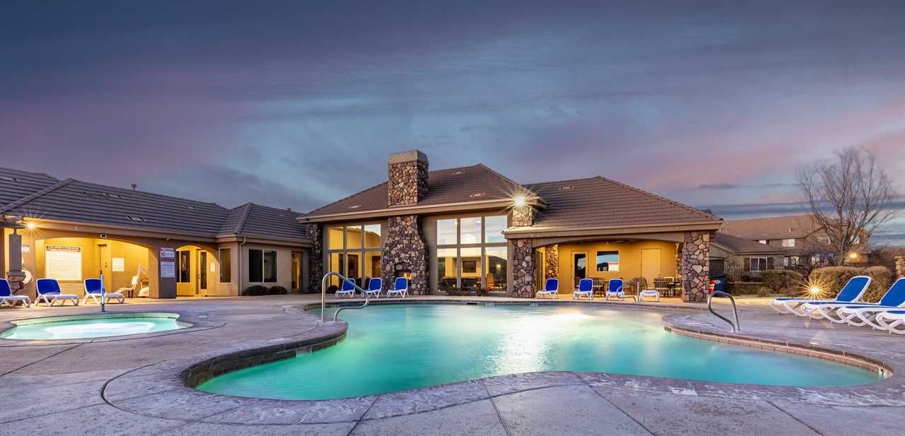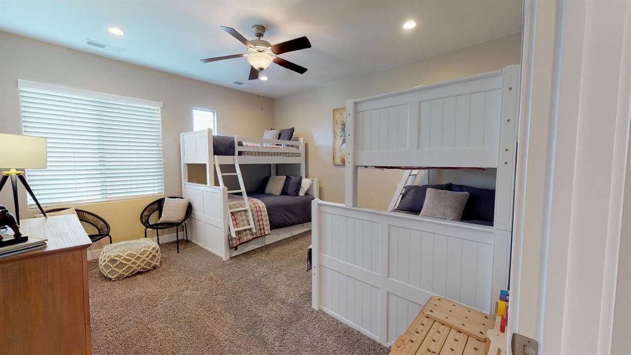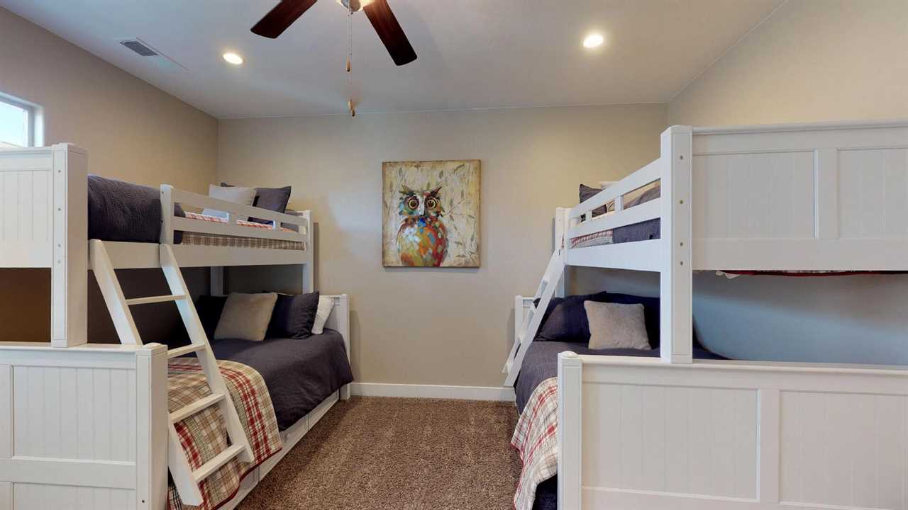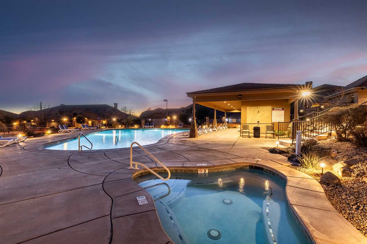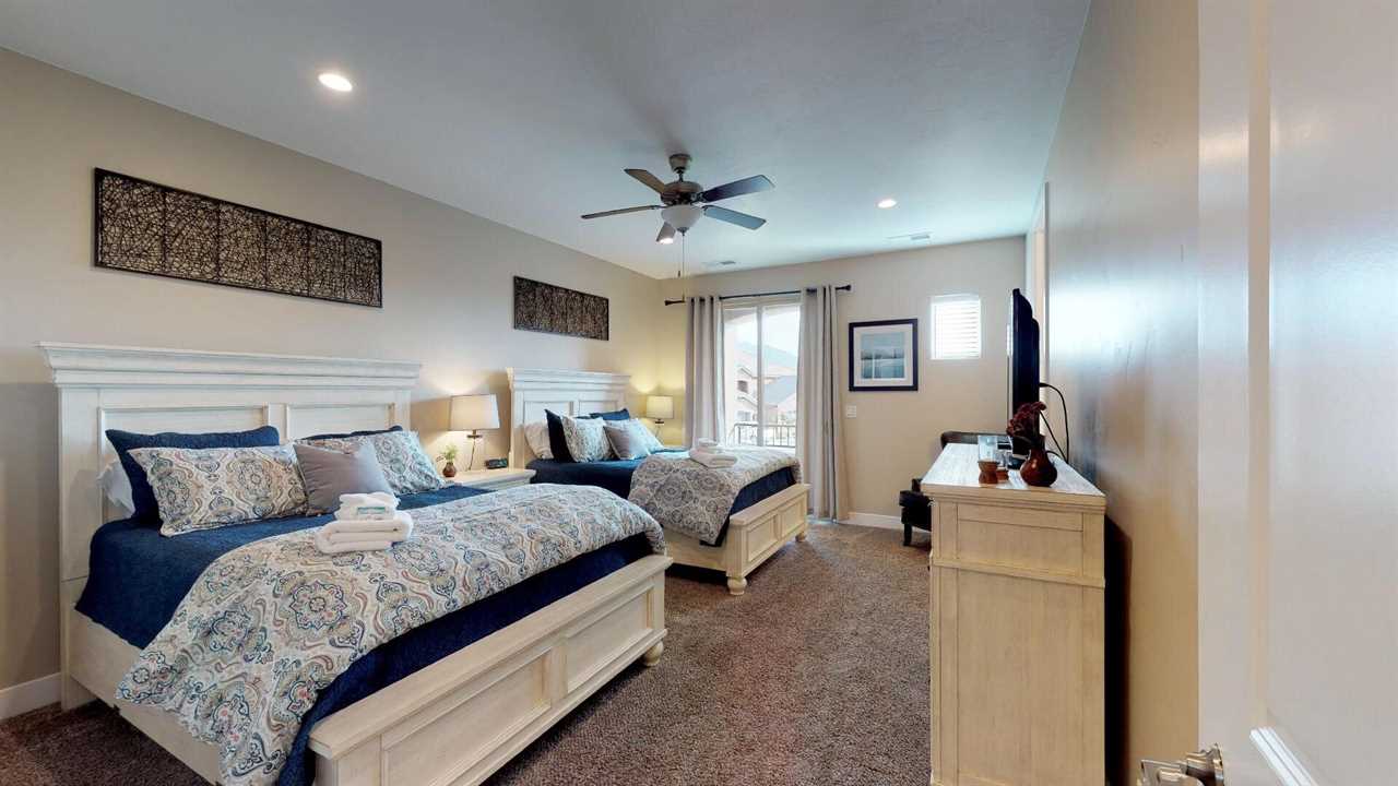 Welcome to Desert Paradise Getaway! This St. George, Utah Vacation Home features 3 bedrooms with 3.5 bathrooms across the street from the pool in the Coral Ridge Community. This beautiful St. George Utah Vacation Home is located about 5 minutes from Sand Hollow State Park and only 32 miles from Zion National Park. This beautiful property is the perfect St. George, Utah Vacation Home. Featuring stylish décor and a private entrance. Enjoy access to two heated community swimming pools and hot tubs, putting green, clubhouse, and a fitness center. There is also a fishing pond located across the street from the community. This beautiful 2,733 square feet home has a pack and Plays for the little ones. You will enjoy 2 living rooms. One on the main level with the additional living room upstairs with a game room. This home features two master suites one on the main level featuring a king. The second master suite also features two queens. The third bedroom features two Twin over Full Bunk Beds. Enjoy this fully equipped kitchen with all the luxuries of home. Featuring granite counter tops, stainless steel appliances and a large dining room table there is plenty of room to entertain family and friends. There is also additional seating on the back patio off the main level living room. The living room features a flat-screen TV. The second upstairs living room has a flat screen, Pin Ball Machine, Foose ball, and game table to enjoy as well as a variety of games. Guests are also provided golf discounts at Coral Ridge golf course. Outdoor enthusiasts will also enjoy numerous golf courses, mountain bike trails, hiking, biking and running trails. Main Level Master Bedroom: King bed, flat screen TV, bathroom suite with walk-in shower, large soaking tub and double sinks, open up to the back patio. Main Level Living Room: Two Large couches, flat screen TV, Also a door that opens up to the back patio. Patio: Outdoor seating, table for six and BBQ 2nd Upstairs Family Room: Comfortable Couch, leather chair, large flat screen tv, foosball, pinball, and Game Table. Also opens up to a balcony with hammock. Gourmet Kitchen: granite counter tops, stainless steel appliances, coffee maker, utensils, dishes, pots & pans, crock pot, griddle, toaster, blender, waffle maker etc. Second Master Suite located on the 2nd level: Two queen size beds, balcony, flat screen tv, two chairs, a walk-in closet. Third bedroom: Two Twin over Full Bunk Beds. Two-car garage: Features two water heaters Back Patio: BBQ, two lounge chairs, table, and chairs, also enjoy the large grass area Extra Amenities: Two outdoor heated year-round pools, hot tubs, and a fitness center. There is also a fishing pond across the street from the community. ALSO NEAR THE WASHINGTON COMMUNITY CENTER! With the largest indoor aquatic center in Southern Utah, the Washington City Community Center is set to make a splash! An 8-lane 25-yard competition pool is complemented by a 10,174 square foot beach entry leisure pool with a lazy river, 3 stories hydro tube slide, play sets for all ages, splash pad, and an enormous 317-gallon dump bucket designed to keep you cool