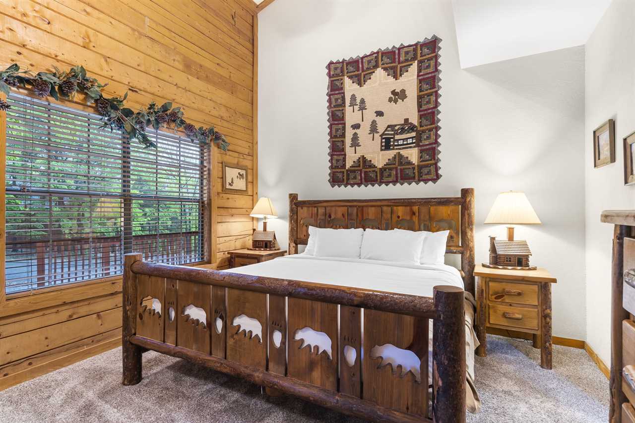 After exploring the city, come “home” to unwind in the jetted tub in the downstairs bathroom, enjoy a long, hot shower in the upstairs bath with double copper rainheads, or gather in the living room for a cozy movie night. With cable TV in the living room, both bedrooms, and the loft, free Wi-Fi, a dedicated work desk in the loft, an in-unit washer and dryer, and seasonal outdoor pool access just a short distance away, this cabin is designed for comfort, convenience, and easy group stays.