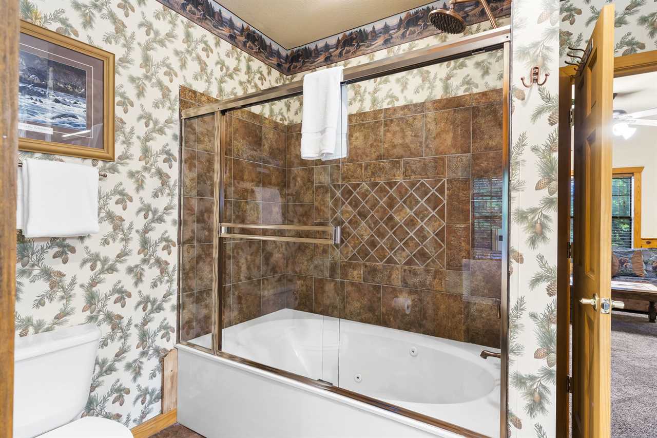 ✦ ✦ Bedroom 1 – King (Downstairs): King bed, cable TV, and easy access to the downstairs bathroom with jetted tub and step-in shower
