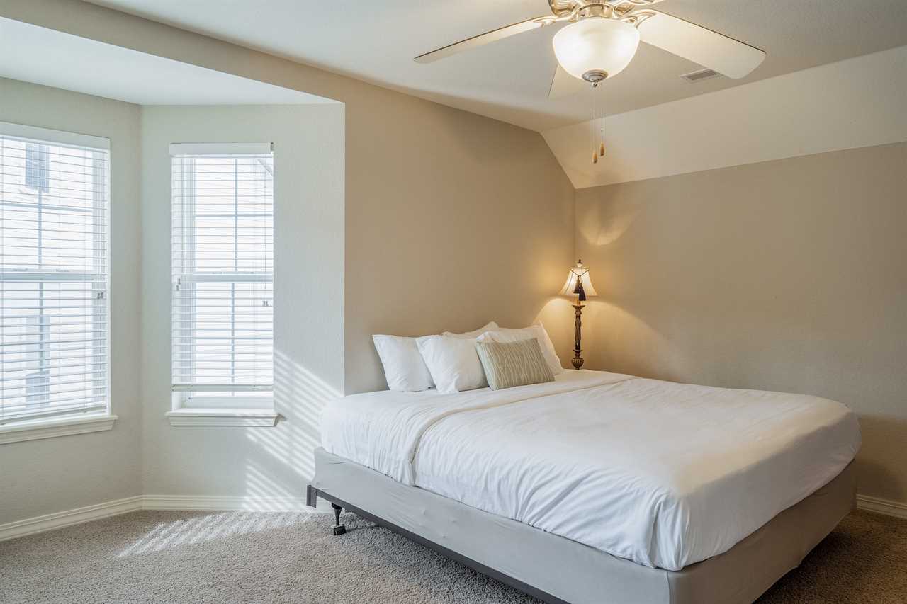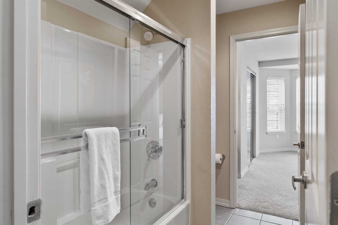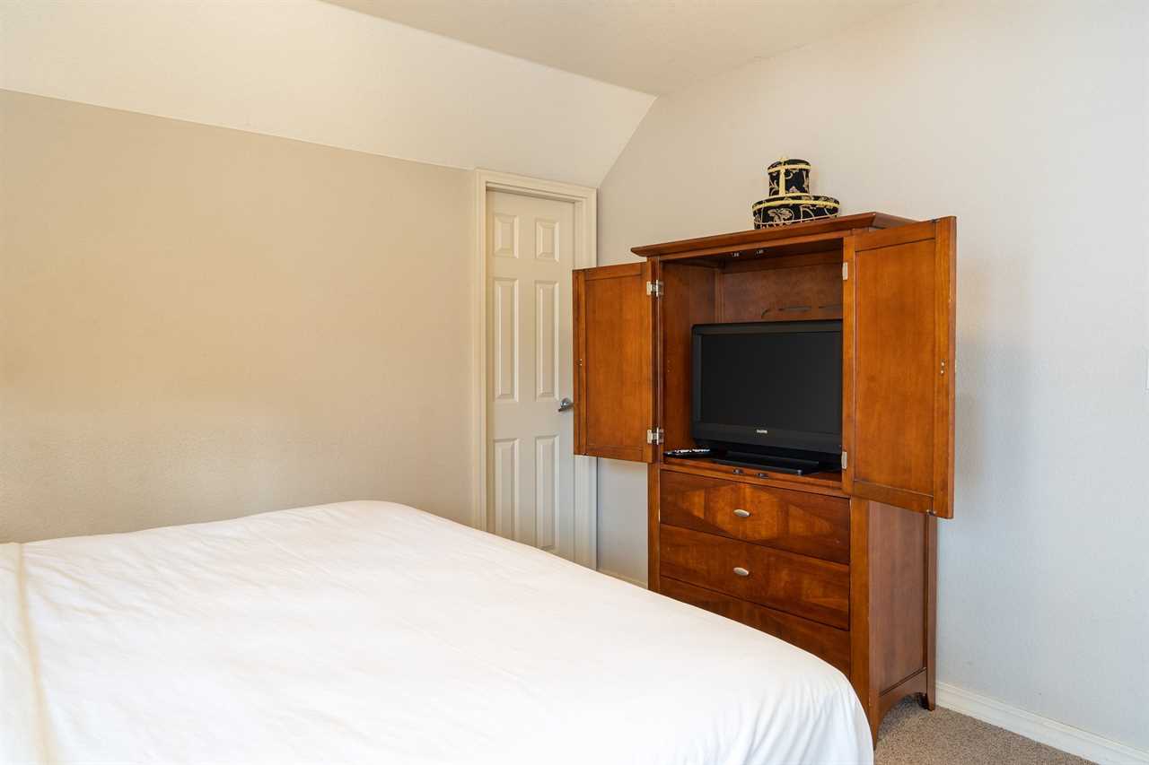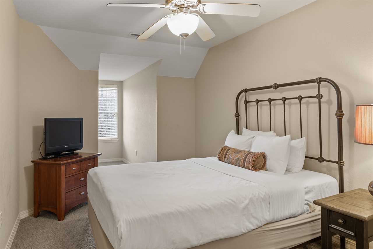 ✦ ✦ Bedroom 3 (Upper Level): Queen bed 🛏️, cable TV 📺, shared Jack & Jill bath access (tub/shower combo 🚿🛁 + private vanity)