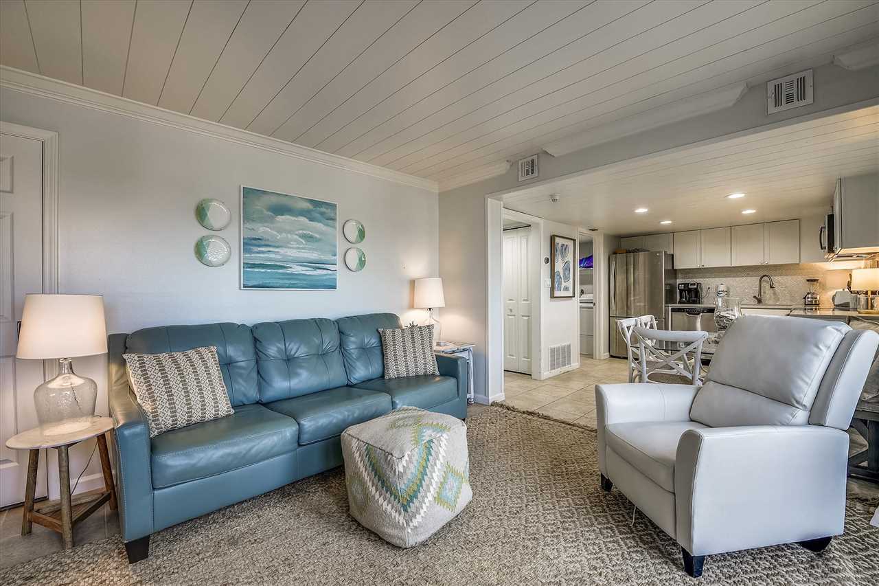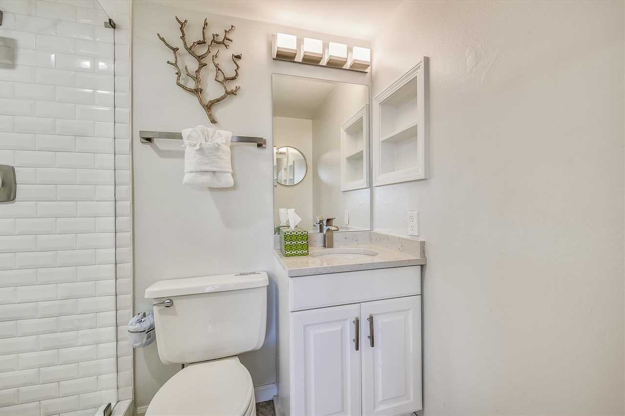 Pinnacle Port A502 is the perfect location for a quiet beach vacation for up to 8 people. This unit is located on the 5th floor. On the main floor of the condo, you'll find a spacious living area with an updated smart TV with HDTV. Queen size sleeper sofa, perfect for sleeping 2 people. There is a dining table and bar area to enjoy a fabulous meal in the updated kitchen. The spacious kitchen is fully stocked. You'll find a laundry room across from the kitchen. There is a king master suite downstairs with tiled shower. Enjoy the balcony that overlooks Lake Powell and the boat ramp.