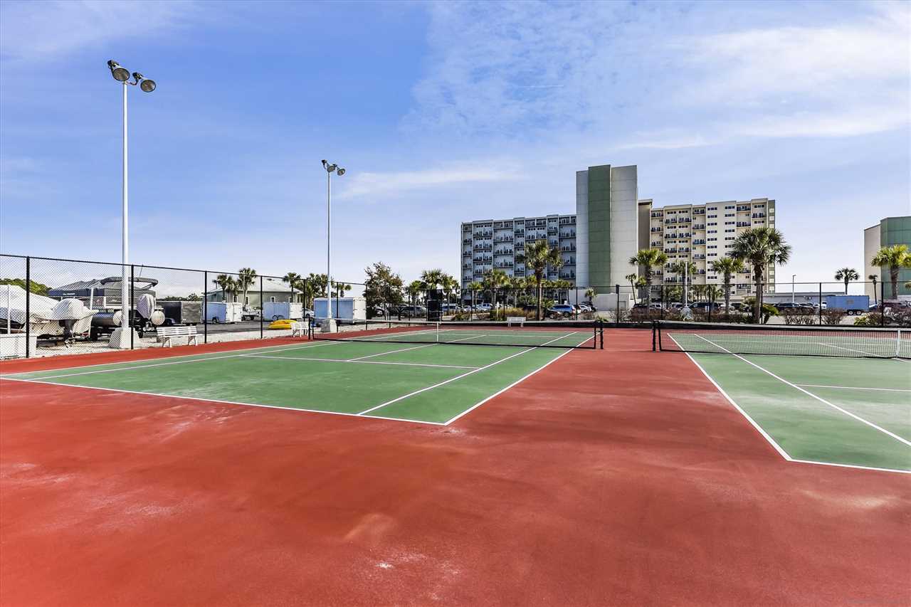 Amenities at Pinnacle Port condos include an indoor/outdoor pool with an elevated sun deck overlooking the beach. A second outdoor pool is located at the opposite end of the resort between the sports lawn and tennis courts. Four tennis courts are lighted for night play, while the sports lawn includes shuffleboard courts, bocce ball courts, horseshoes, and basketball. There's also a sandy playground where kids can swing, slide, and climb to their hearts' content. An adjacent grilling area offers charcoal grills and covered picnic tables.