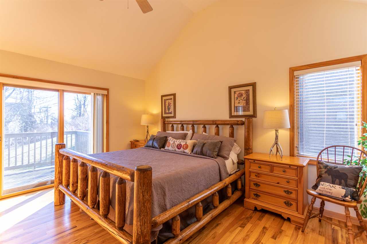 Welcome Home to your new mountain hideaway! This pristine home perched on Appalachian Ski Mountain is sure to delight your entire family. The main level has an open kitchen, living room, and dining area with cathedral ceilings and panoramic mountain views through the wall of windows. The kitchen is fully equipped with plenty of space and all the essentials you'll need to prepare tasty meals. The dining area boasts views from all seats. The living room features very comfortable furniture arranged around a gas-log stone fireplace with an HDTV and DVD player. There is also a half bath off the kitchen. A master suite is down the hall, featuring a King bed, private small deck, as well as a private bathroom with double vanities and a water closet & shower. Step out onto the spacious wrap-around deck furnished with a dining table and Adirondacks and enjoy the awe-inspiring mountain views. A gas grill is positioned on the deck. This home also offers a single car sized garage for the guests to use. The lower level contains a second living area with HDTV & a PlayStation 3 console (bring your favorite games), a deck with a wonderful hot tub and great views, a bedroom with a queen bed, a bedroom with 2 twin beds, and a shared full bathroom with a shower is between the bedrooms. Whether you're coming for an ASU football game, outdoor activities, a family vacation, or just to get away from it all, this lovely home is convenient to it all High Country shops, dining and entertainment. Welcome Home indeed! ADDITIONAL NOTES: - All BRMR homes offer well stocked kitchens with all utensils needed to cook meals. There is also a "starter set" of paper products at the house: a roll of toilet paper per bath, several garbage bags, a small vial of dishwashing liquid, a few tablets of dishwasher detergent, some laundry pods, a roll of paper towels, hand soap, shampoo, conditioner, body wash, and some makeup remover cloths. There are enough of these items for one night, or maybe two. We do not provide hair dryers. Towels and linens will be provided - Check in is after 4pm and check out is by 10am - Must electronically sign an additional Rental Agreement Terms and Conditions and any Neighborhood Rules sent by Host (property manager) or entry information cannot be sent. - Must be at least 25 years old to reserve. This person is required to be the person signing the agreement and must be one of the persons staying in the property for the reserved dates. - No smoking inside the home. No trace of smoking left outside the home. - Do not leave food or trash outside as it could attract animals. All trash must be bagged and placed in the trash receptacle indicated in the Welcome Book inside the house or your digital guidebook. - No parties or gatherings above the posted occupancy allowed at any time. Keep outside noise respectable. - 4WD/AWD and/or chains recommended during winter (Nov-March) for all homes. Travelers visiting during the winter months where inclement weather may be possible should come prepared with an AWD or 4WD vehicle, and chains may also be required if it snows. No refunds, allowances, or date changes will be given to travelers who are not prepared with the proper vehicle, as outlined in the Rental Agreement. - This home allows up to 2 mature, small, well-trained dogs with an additional pet rent of $25 per pet per night plus tax. Pets other than dogs are not permitted. - Firewood may be purchased at the time of booking or with a week's notice. You receive two wrapped, kiln-dried bundles and a fire starter for $25 plus tax. - The home has more than 10 steps to enter the main level. CANCELLATION POLICY - Bookings canceled 60+ days before arrival will receive a refund of the deposit. Bookings canceled between 31-59 days before arrival will receive a refund of half of the deposit. Bookings canceled within 30 days of arrival are not entitled to a refund unless the reservation dates are rebooked to another guest. All bookings are subject to a $50 cancellation fee. NCREC Broker Name: Blue Ridge Mountain Rentals NCREC License Number: 29198