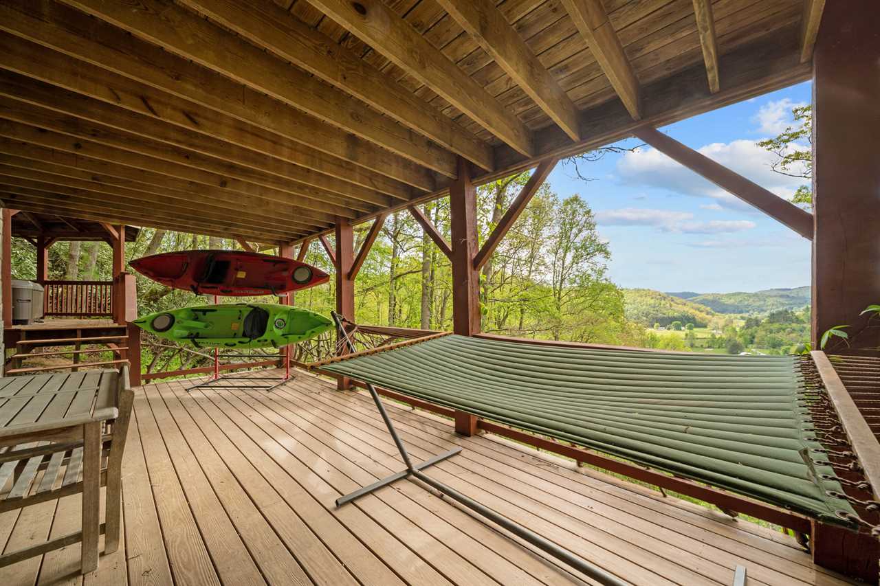 The outdoor spaces are true Highlight of the home. The lower deck invites you to unwind and connect with family and friends. Ample seating, a hammock, and great views make it the perfect place to share stories and take in the mountain air. Just around the corner, a private hot tub awaits—perfect for soaking after a day in the mountains.