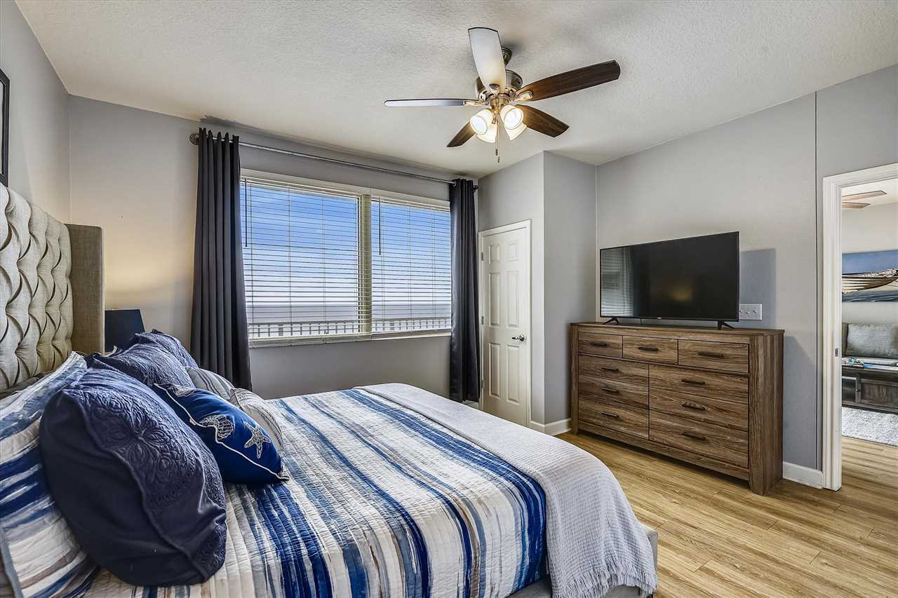 The main bedroom is truly its retreat. You will find a king bed with new furnishings and high-end linens. You can rest assured that every night spent here will be relaxing and cozy! There is a flat-screen TV for your entertainment and an attached private bathroom with a tub/shower combo