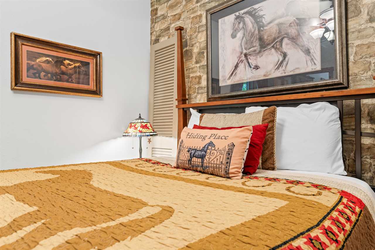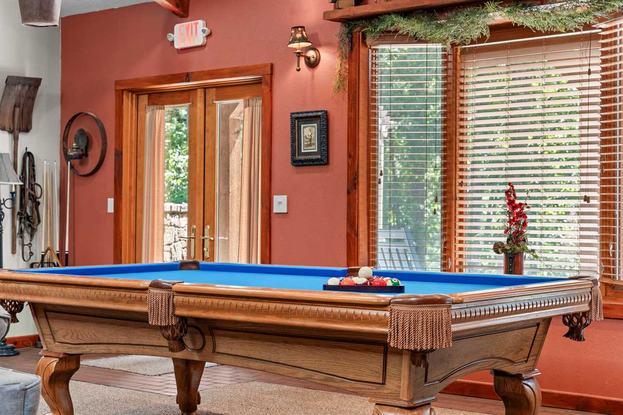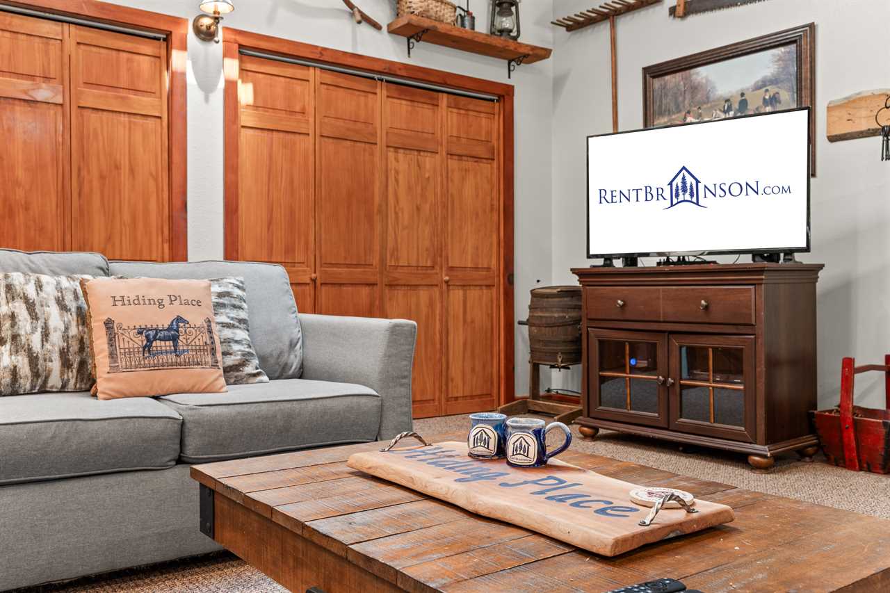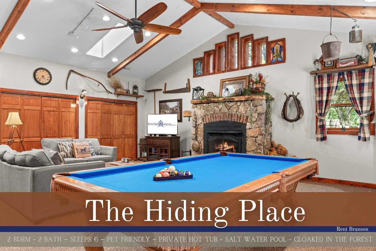 An UNBELIEVABLE find! Follow the split rail fence, through the pines, to find your Hiding Place. This is located in secluded Tall Pines 40 acres estate off of UU only 20 minutes to Branson. The home sits on 40 acres shared with only 7 other homes in a community called Tall Pines. New to Tall Pines is a saltwater community swimming pool shared by only these 7 homes. The Hiding Place is a beautiful, one-level, equestrian-style home. The living area features a pool table, comfortable furnishings, and a fireplace, all illuminated by skylights. Make a home-style meal in the top-of-the-line kitchen! Make memories around the table that will keep you coming back. Both bedrooms are outfitted with comfortable queen poster beds and luxurious linens. The bathrooms both have combination tub/showers, and lovely country decor. You will be able to enjoy fast wifi throughout the home! The outside is just as stunning as the inside! Complete with a barbeque grill, hot tub with a newly placed privacy barrier, patio furniture, and a waterfall pond. The well-lit patio is the perfect place to relax under the stars. We add extra fun to your stay with $400 in attraction tickets every day. Watch a video of the Tall Pines Country Estate on our YouTube channel! We know you will enjoy the peaceful countryside away from the bustle of Branson. Lake access is just a half-mile down the road. A large cattle ranch surrounds our property. Another one is just across the road. Almost every other Branson rental is tight up against a lot of other ones, cabins upon cabins and condos upon condos. Ours is not anything like that and we have kept the number of homes to a minimum on this beautiful tranquil country estate! We honor the beauty of the land. Enjoying nature is of paramount importance and Tall Pines is one of the best places we know to do that, we even have walking trails and a treasure hunt! If you find the treasure just replace it with a new trinket for the next guest. The setting here is so peaceful that you may never want to leave, but if you do, we are only 20 minutes from Branson and only 18 miles to Big Cedar! Close enough for convenience yet far enough away for seclusion. Don't wait for life to pass you by, come to the Hiding Place where your family will Make Memories and Start Traditions! We have a Tesla and universal electric car charger for your use! Dogs are welcome to stay in our vacation home with prior approval and for an additional fee. Please ask about our pet policy for all applicable terms and conditions. **Book with peace of mind by adding our new VIP Protection Plan to your stay!! **Ask us about paying with ECHECK (not applicable for Marriott Bonvoy reservations) Shared property amenities Walking trails and Treasure Hunt Communal Fire Pit Playground area Check out some great local tips and activities on our social media! Be sure to find the videos of the dancing bear! Bedding Configuration Bedrooms 1 & 2 - Queen Air Mattress Standard rates based on 4 people Maximum 6 persons House Rules & Policies No Smoking of Any Kind Dogs may be accepted; prior approval is required and restrictions apply. An additional pet cleaning fee and daily pet fee will be collected after a confirmed booking. An additional refundable pet deposit may also apply. A signed pet agreement is required. No Parties Check-in and Check-out Times are Strictly Enforced No RVs, Boats, Campers, or Tents Allowed Minimum Age to Rent is 21 Minimum Nights Required–Varies by season and holiday -Please call for short-stay inquiries - Some dates require specific arrival/departure dates due to holidays. Additional rules and policies are outlined in the required Rental Agreement–provided upon a confirmed booking. An additional refundable security deposit may be required ranging from $300-$1500, not included in your initial booking. Please be a courteous guest and respectful to your neighbors. **To ensure the security of our rental process, we kindly require all reservation holders to submit a selfie with their valid government ID before confirmation. THE RENT BRANSON CLEAN PROMISE Rent Branson owns a private, commercial laundry facility, which means all linens are washed in our high heat commercial washers with EPA-approved detergents to ensure complete sanitation. You deserve the peace of mind that comes with a professionally cleaned home. After our housekeeping team has cleaned the home, our professional inspectors walk through the home to ensure every home is clean and ready for your arrival.