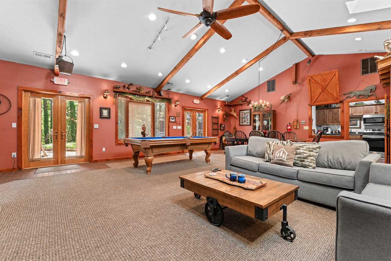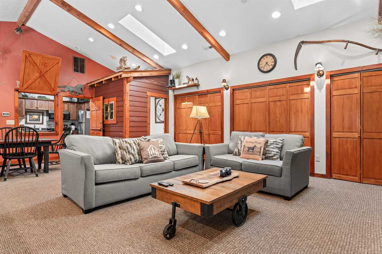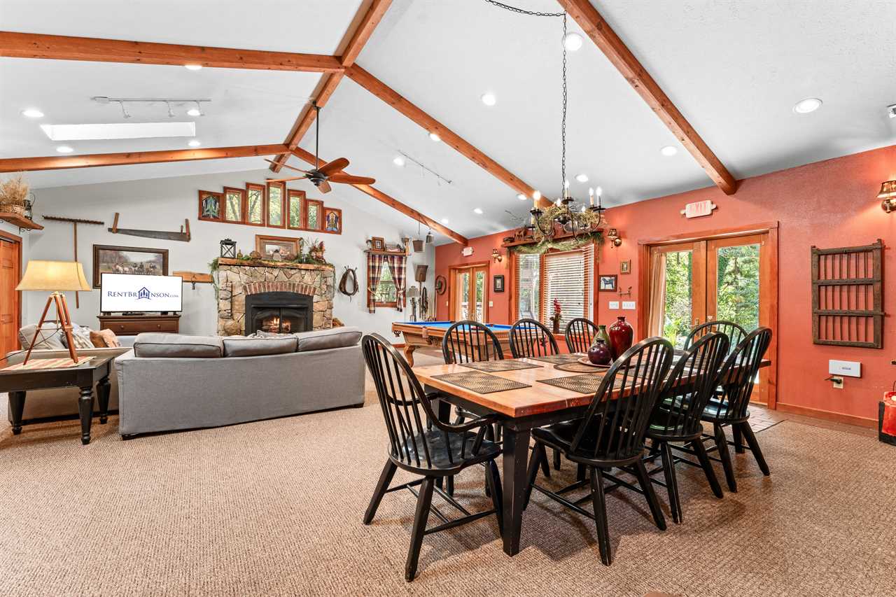 An UNBELIEVABLE find! Follow the split rail fence, through the pines, to find your Hiding Place. This is located in secluded Tall Pines 40 acres estate off of UU only 20 minutes to Branson. The home sits on 40 acres shared with only 7 other homes in a community called Tall Pines. New to Tall Pines is a saltwater community swimming pool shared by only these 7 homes. The Hiding Place is a beautiful, one-level, equestrian-style home. The living area features a pool table, comfortable furnishings, and a fireplace, all illuminated by skylights. Make a home-style meal in the top-of-the-line kitchen! Make memories around the table that will keep you coming back. Both bedrooms are outfitted with comfortable queen poster beds and luxurious linens. The bathrooms both have combination tub/showers, and lovely country decor. You will be able to enjoy fast wifi throughout the home! The outside is just as stunning as the inside! Complete with a barbeque grill, hot tub with a newly placed privacy barrier, patio furniture, and a waterfall pond. The well-lit patio is the perfect place to relax under the stars. We add extra fun to your stay with $400 in attraction tickets every day. Watch a video of the Tall Pines Country Estate on our YouTube channel! We know you will enjoy the peaceful countryside away from the bustle of Branson. Lake access is just a half-mile down the road. A large cattle ranch surrounds our property. Another one is just across the road. Almost every other Branson rental is tight up against a lot of other ones, cabins upon cabins and condos upon condos. Ours is not anything like that and we have kept the number of homes to a minimum on this beautiful tranquil country estate! We honor the beauty of the land. Enjoying nature is of paramount importance and Tall Pines is one of the best places we know to do that, we even have walking trails and a treasure hunt! If you find the treasure just replace it with a new trinket for the next guest. The setting here is so peaceful that you may never want to leave, but if you do, we are only 20 minutes from Branson and only 18 miles to Big Cedar! Close enough for convenience yet far enough away for seclusion. Don't wait for life to pass you by, come to the Hiding Place where your family will Make Memories and Start Traditions! We have a Tesla and universal electric car charger for your use! Dogs are welcome to stay in our vacation home with prior approval and for an additional fee. Please ask about our pet policy for all applicable terms and conditions. **Book with peace of mind by adding our new VIP Protection Plan to your stay!! **Ask us about paying with ECHECK (not applicable for Marriott Bonvoy reservations) Shared property amenities Walking trails and Treasure Hunt Communal Fire Pit Playground area Check out some great local tips and activities on our social media! Be sure to find the videos of the dancing bear! Bedding Configuration Bedrooms 1 & 2 - Queen Air Mattress Standard rates based on 4 people Maximum 6 persons House Rules & Policies No Smoking of Any Kind Dogs may be accepted; prior approval is required and restrictions apply. An additional pet cleaning fee and daily pet fee will be collected after a confirmed booking. An additional refundable pet deposit may also apply. A signed pet agreement is required. No Parties Check-in and Check-out Times are Strictly Enforced No RVs, Boats, Campers, or Tents Allowed Minimum Age to Rent is 21 Minimum Nights Required–Varies by season and holiday -Please call for short-stay inquiries - Some dates require specific arrival/departure dates due to holidays. Additional rules and policies are outlined in the required Rental Agreement–provided upon a confirmed booking. An additional refundable security deposit may be required ranging from $300-$1500, not included in your initial booking. Please be a courteous guest and respectful to your neighbors. **To ensure the security of our rental process, we kindly require all reservation holders to submit a selfie with their valid government ID before confirmation. THE RENT BRANSON CLEAN PROMISE Rent Branson owns a private, commercial laundry facility, which means all linens are washed in our high heat commercial washers with EPA-approved detergents to ensure complete sanitation. You deserve the peace of mind that comes with a professionally cleaned home. After our housekeeping team has cleaned the home, our professional inspectors walk through the home to ensure every home is clean and ready for your arrival.
