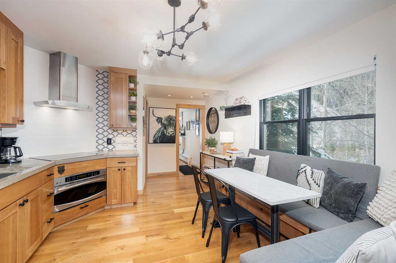 Take in views of the mountains and San Miguel River from the balcony of this updated one bedroom, one bathroom vacation rental property. Viking Lodge 210 features contemporary and clean finishes and furnishings, including a beautiful kitchen with an induction cook top, convection oven/microwave, and full-size refrigerator. Neutral colors and comfortable accommodations will have you relaxing between your Telluride adventures and outings. With its riverfront location and easy access to everything you need in town, this property is sure to create a convenient and memorable base for your mountain escape.