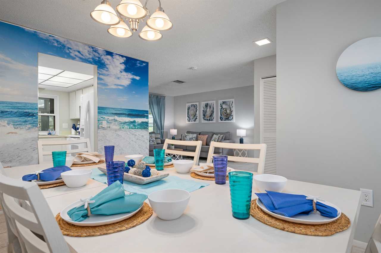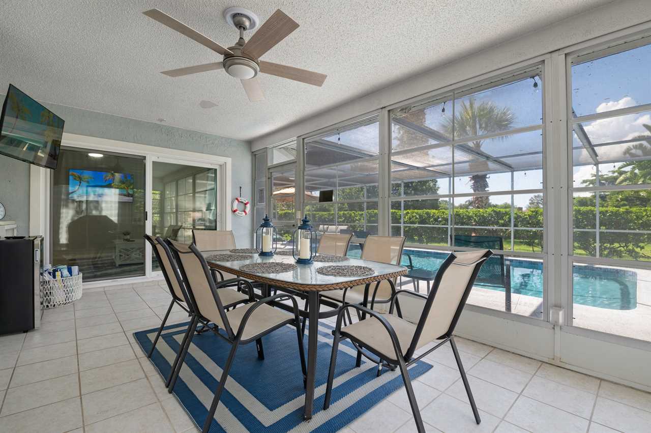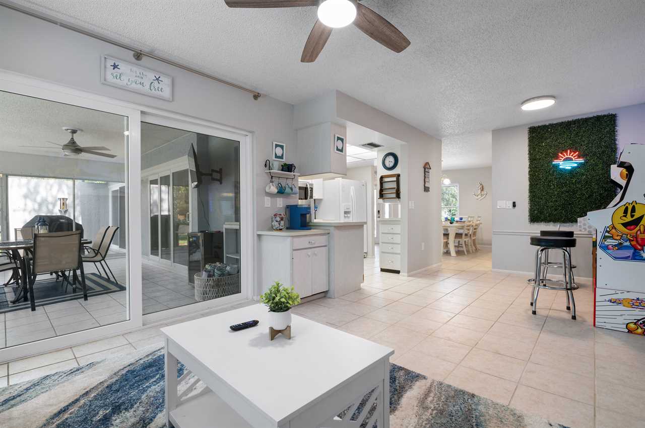 The kitchen comes fully equipped with everything needed to make your favorite home-cooked meals and be able to eat in and enjoy the house! For seating, you have a dining room table inside as well as an additional table in the enclosed Florida room off the back of the house.