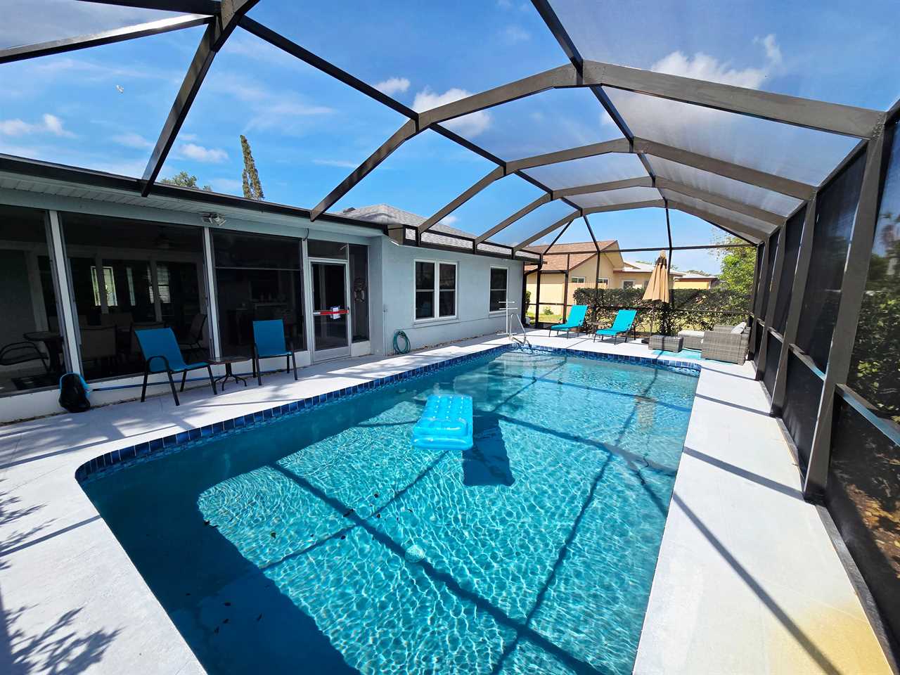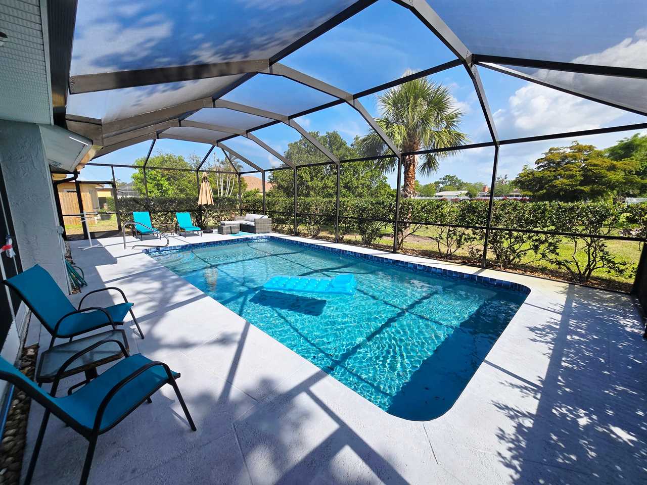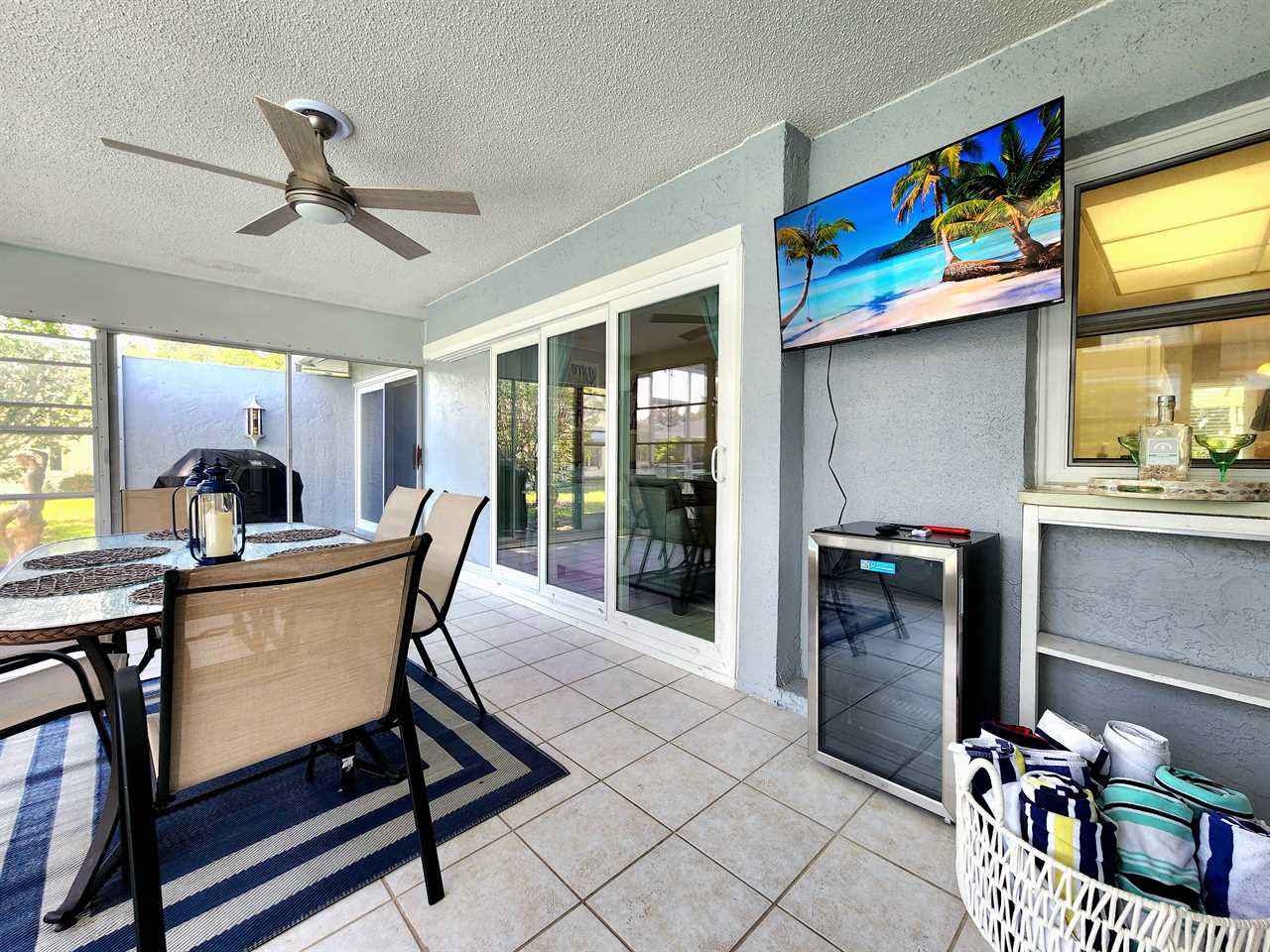 The back has a screened-in pool area with a bar area for seating as well as a few loungers for enjoying the Florida Sun! Enjoy cooking on the grill? We also have one available for use located in the back.