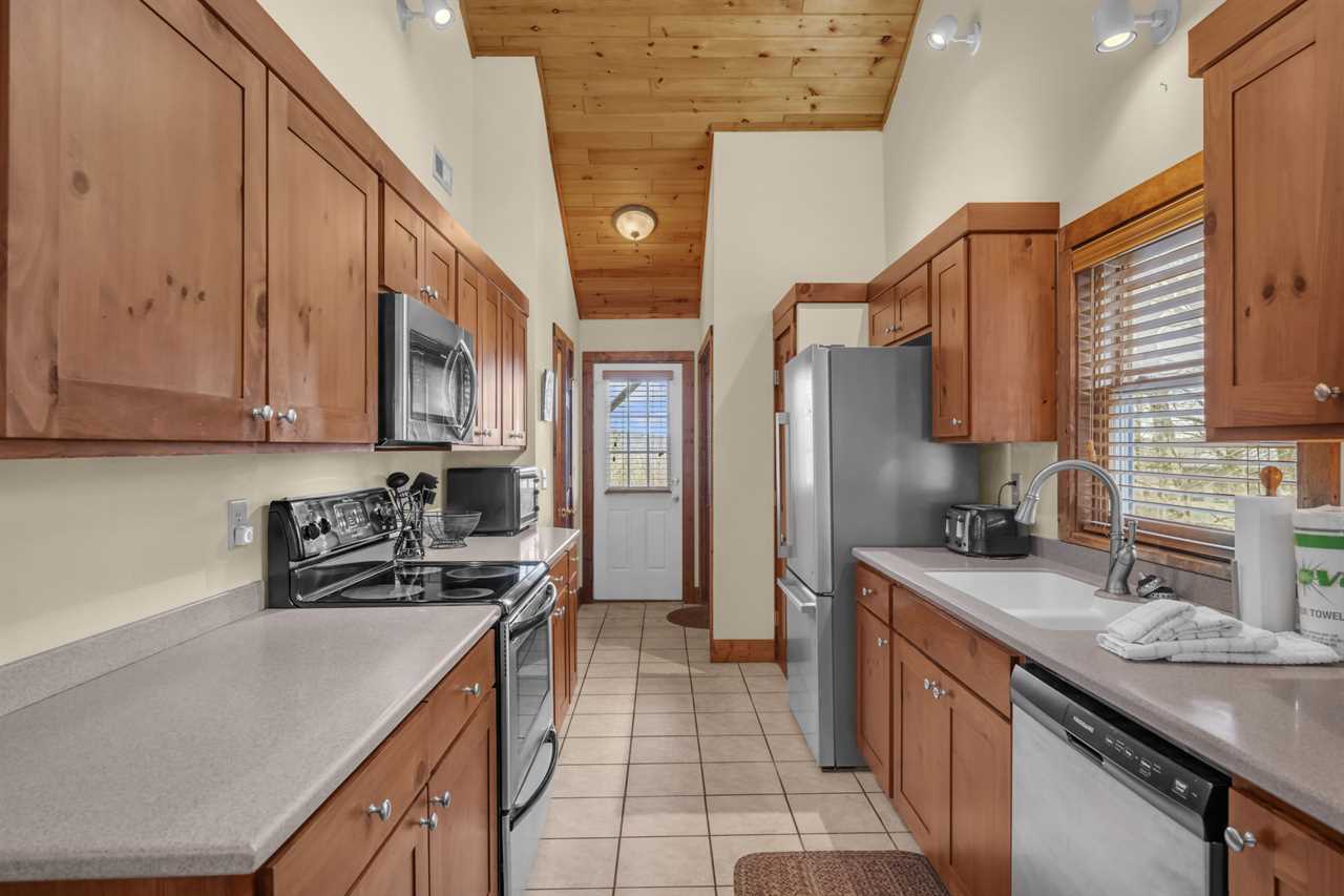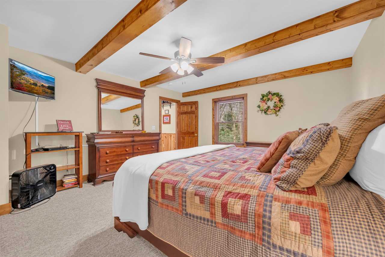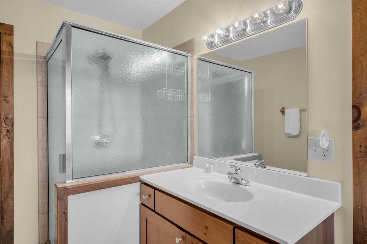 This two-story house has a spacious master suite on each floor. There is a queen master suite on the main floor with an HD Smart TV, a full ensuite bathroom featuring ceramic tile floors, a walk-in closet, a large shower stall, and a jetted Jacuzzi tub beside a window looking out to the mountains. A large king master suite on the first floor boasts an HD Smart TV with expanded digital cable programming, a full ensuite bathroom with an oversized tiled shower stall, and a walk-in closet.