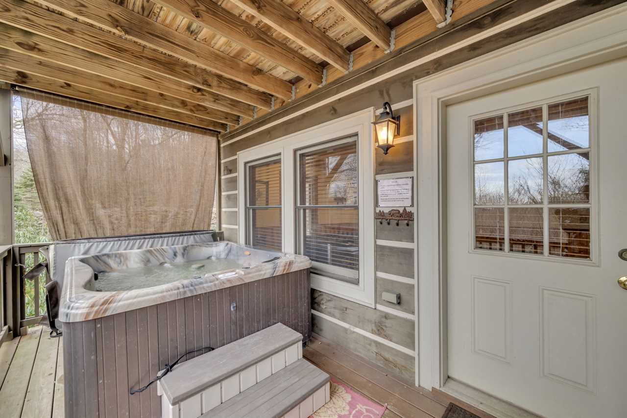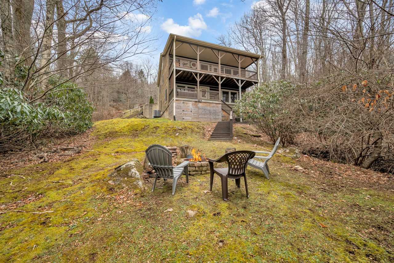 Head out onto the covered deck and enjoy the view from the rocking chairs. You may even hear a far-off steam whistle from Tweetsie Railroad as it rolls through the mountains. The deck has dining space for four to enjoy outdoor meals. Walk onto the lower level, view-side covered deck to enjoy the hot tub or to access the private backyard with a charcoal grill and the wood-burning fire pit. There is also a sitting area tucked in beside the house for guests to enjoy.