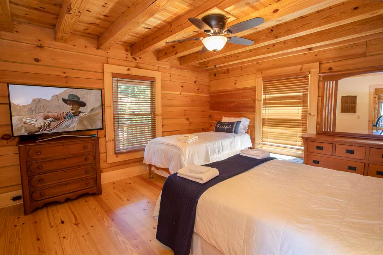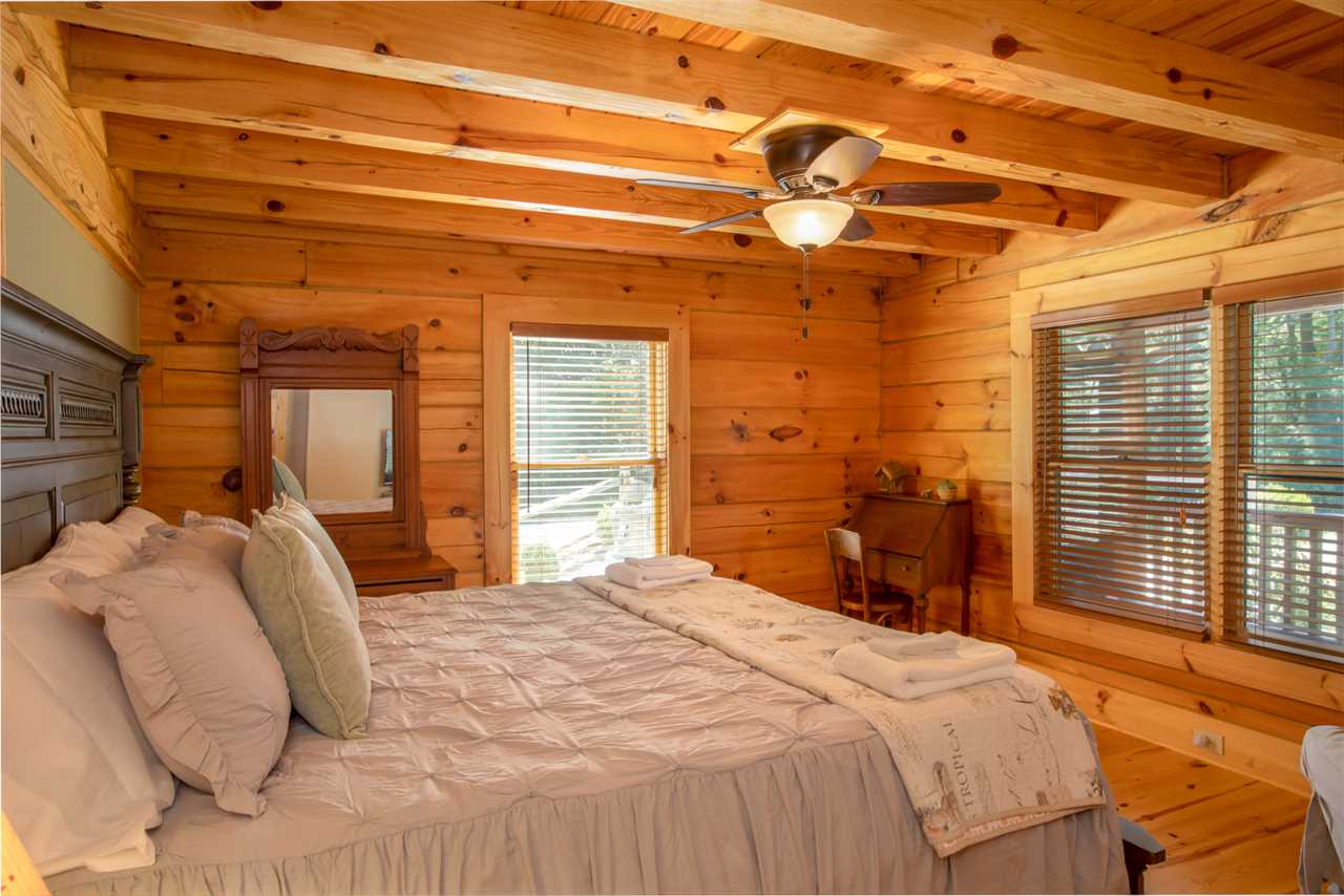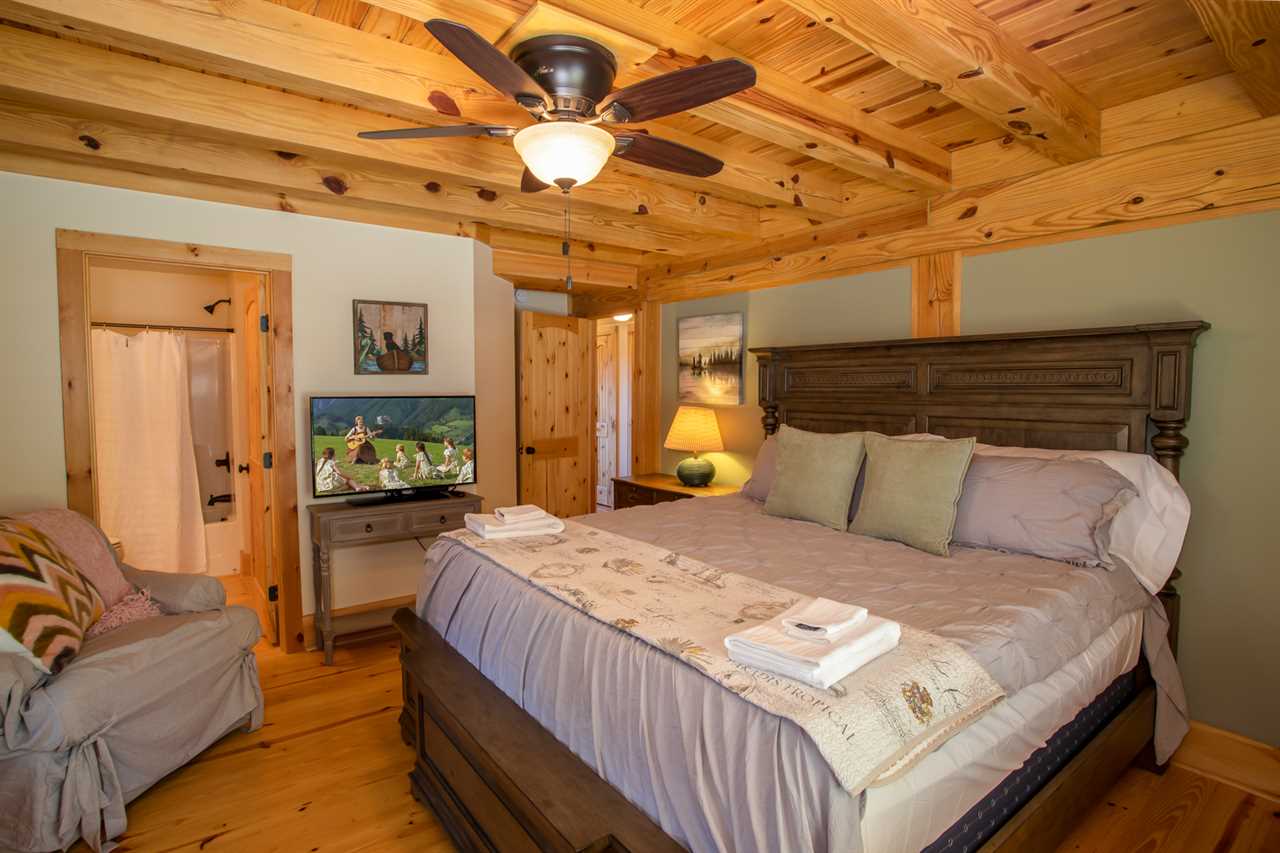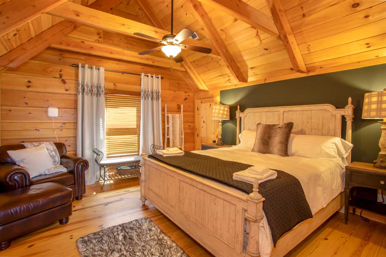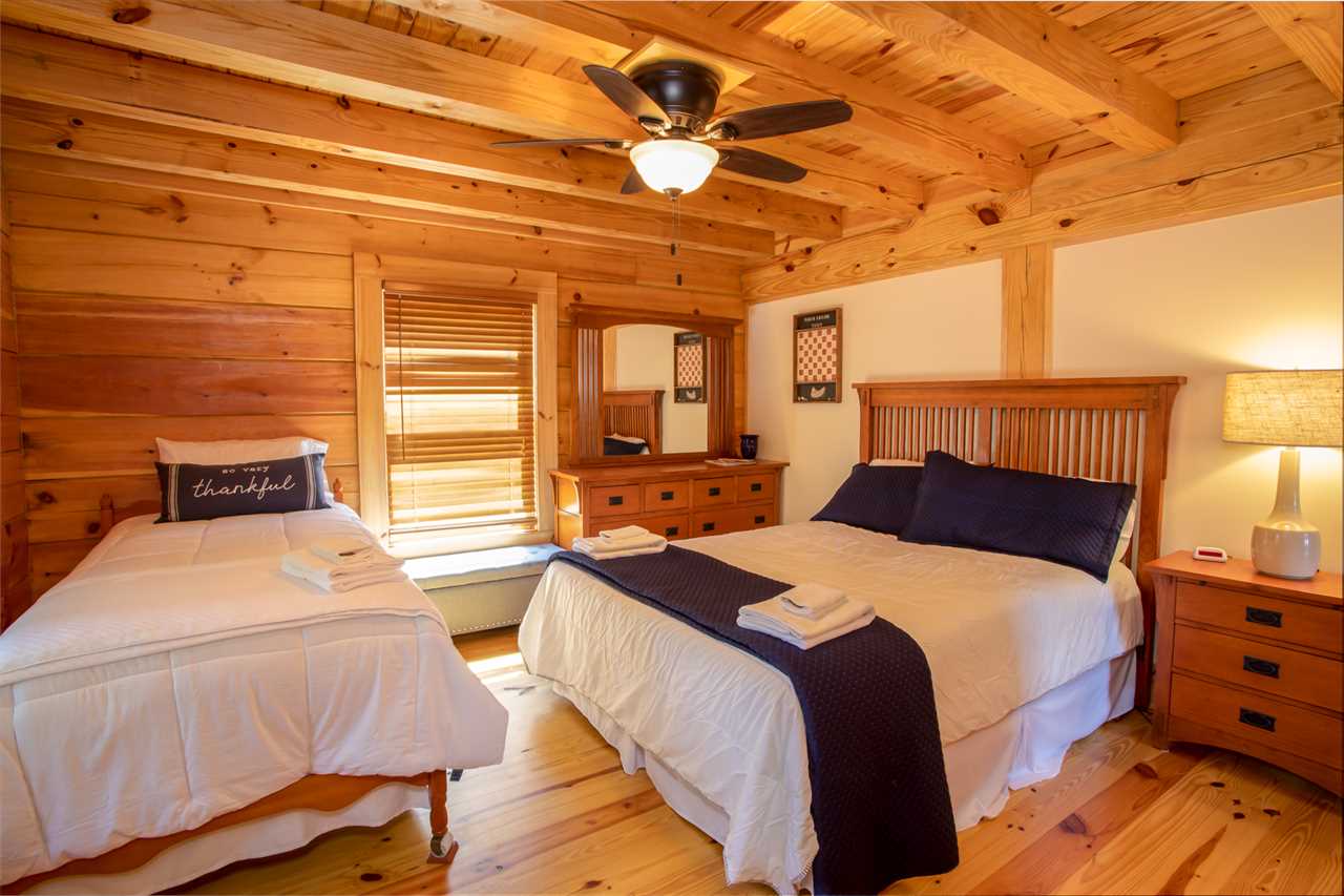 There are two (2) bedrooms are on the main level, one with an ensuite bathroom. Upstairs in the loft, you will find a cozy sitting area and a king bedroom with a bathroom.