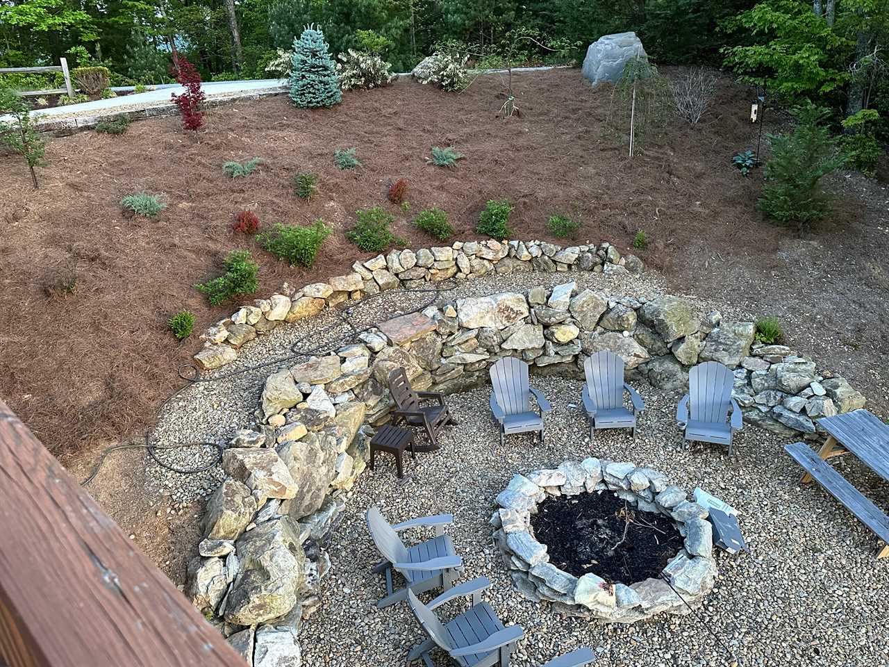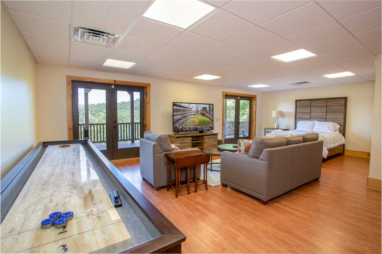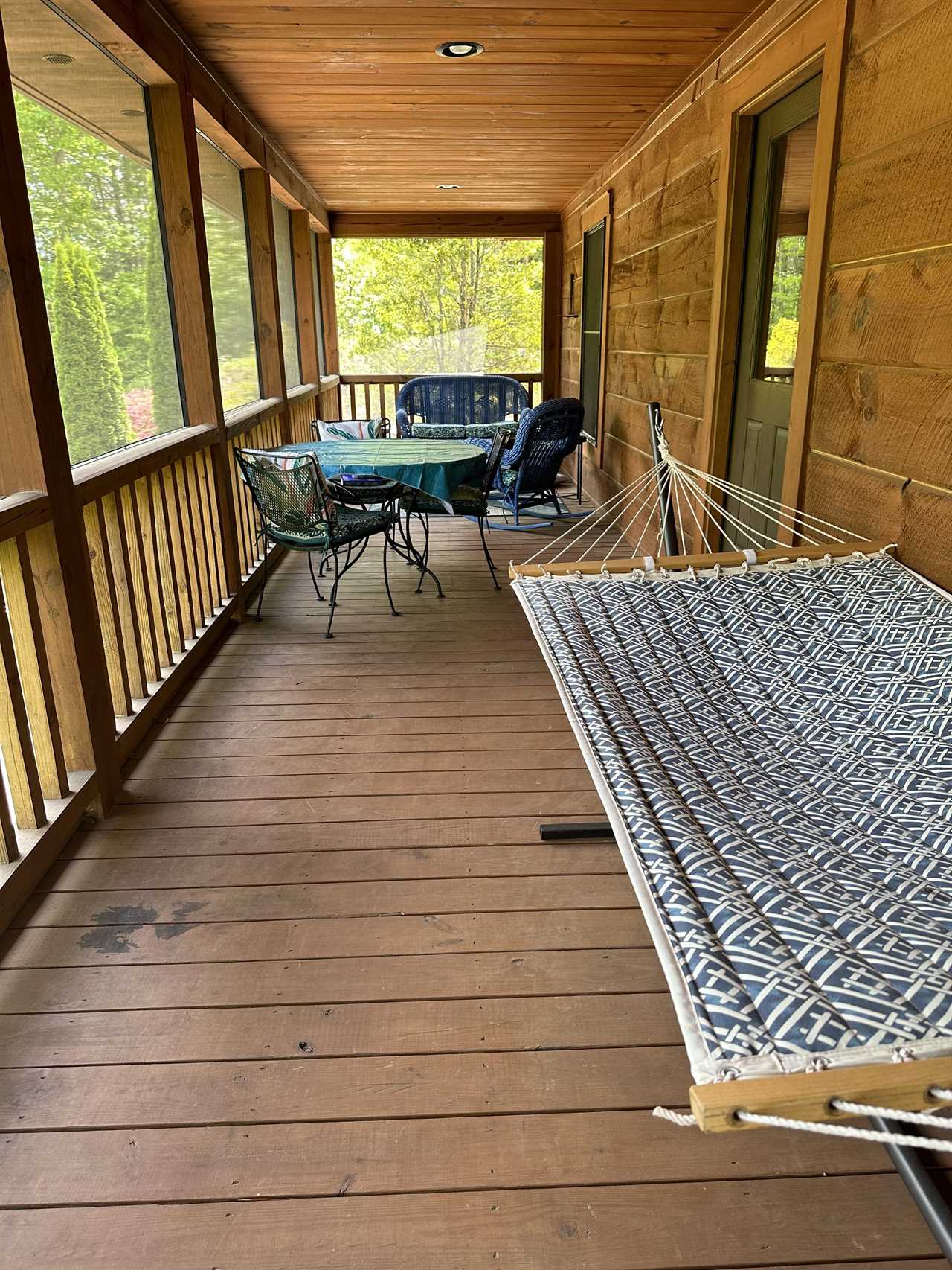 Granite countertops, a gas fireplace inside, shuffleboard and a second living room with a large TV, a gas fire table on the deck, and dual screened porches offer multiple indoor and outdoor living areas for your group. All roads are paved in the community right up to the level gravel driveway.