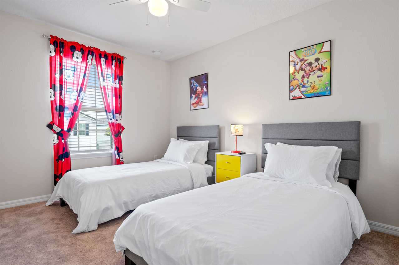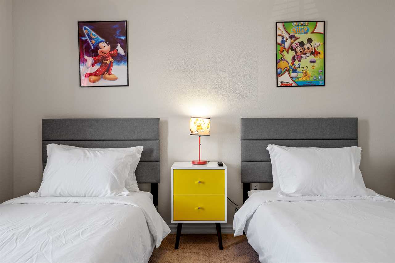 The bedrooms, like the rest of the home, are all bright and modern. Each bedroom has its own Roku Smart TV - 2 bedrooms each with a queen-sized bed, and master bedroom with a king-sized bed, 2 kids bedrooms each with 2 twin-sized beds. All-in-all sleeping up to 10 guests. The home also includes a washer dryer, and an iron ironing board, a safe for your convenience.