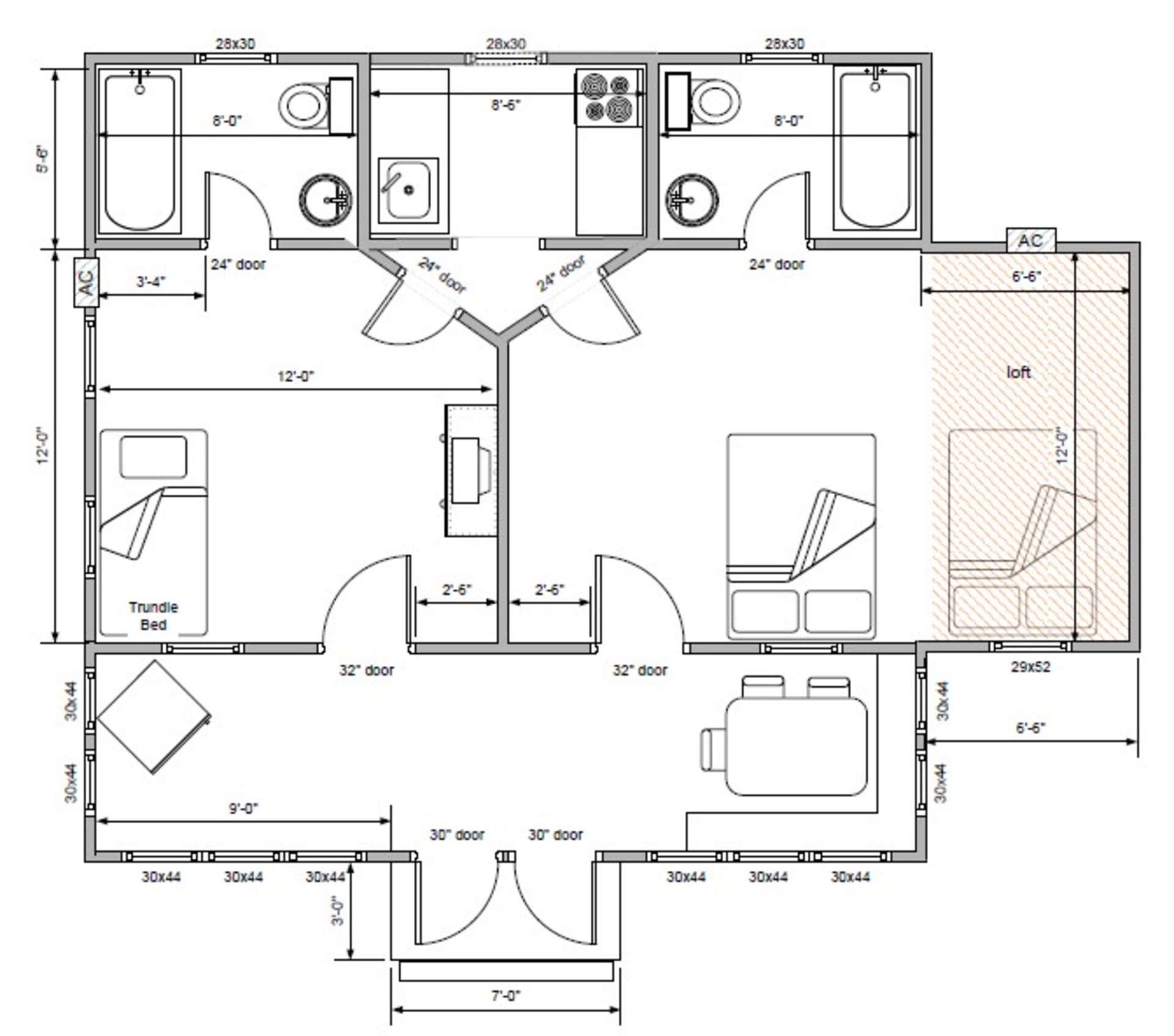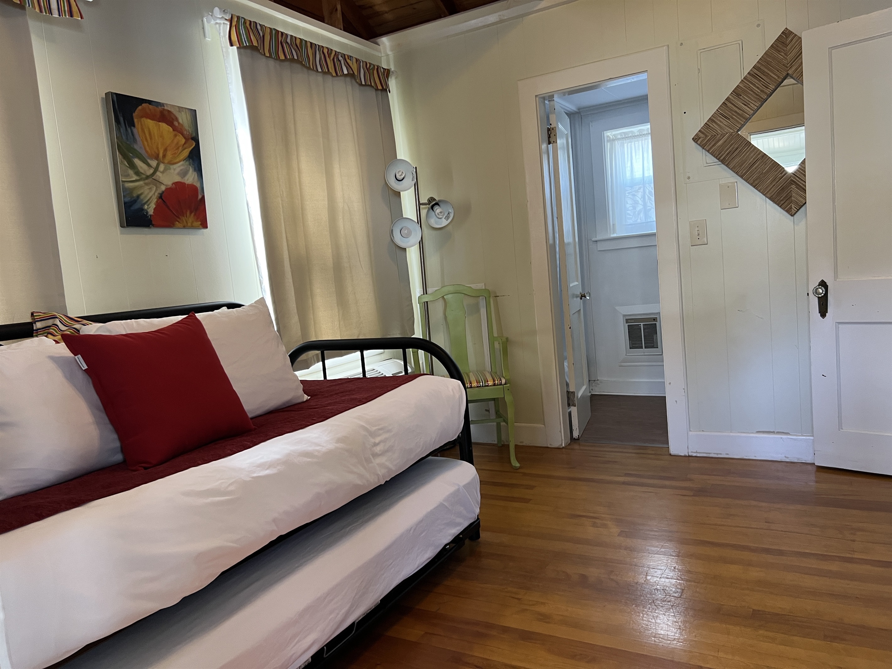 Cottage 8-9 is a 2 bedroom and 2 bathroom Cottage with large private courtyard and kitchenette. Bedroom 1: Trundle (2 Singles Convertible to a King). Bedroom 2: 2 Queen Beds plus a loft suitable for children, accessible by ladder with two Twins. The Cottage features 2 Bathrooms each with a shower.