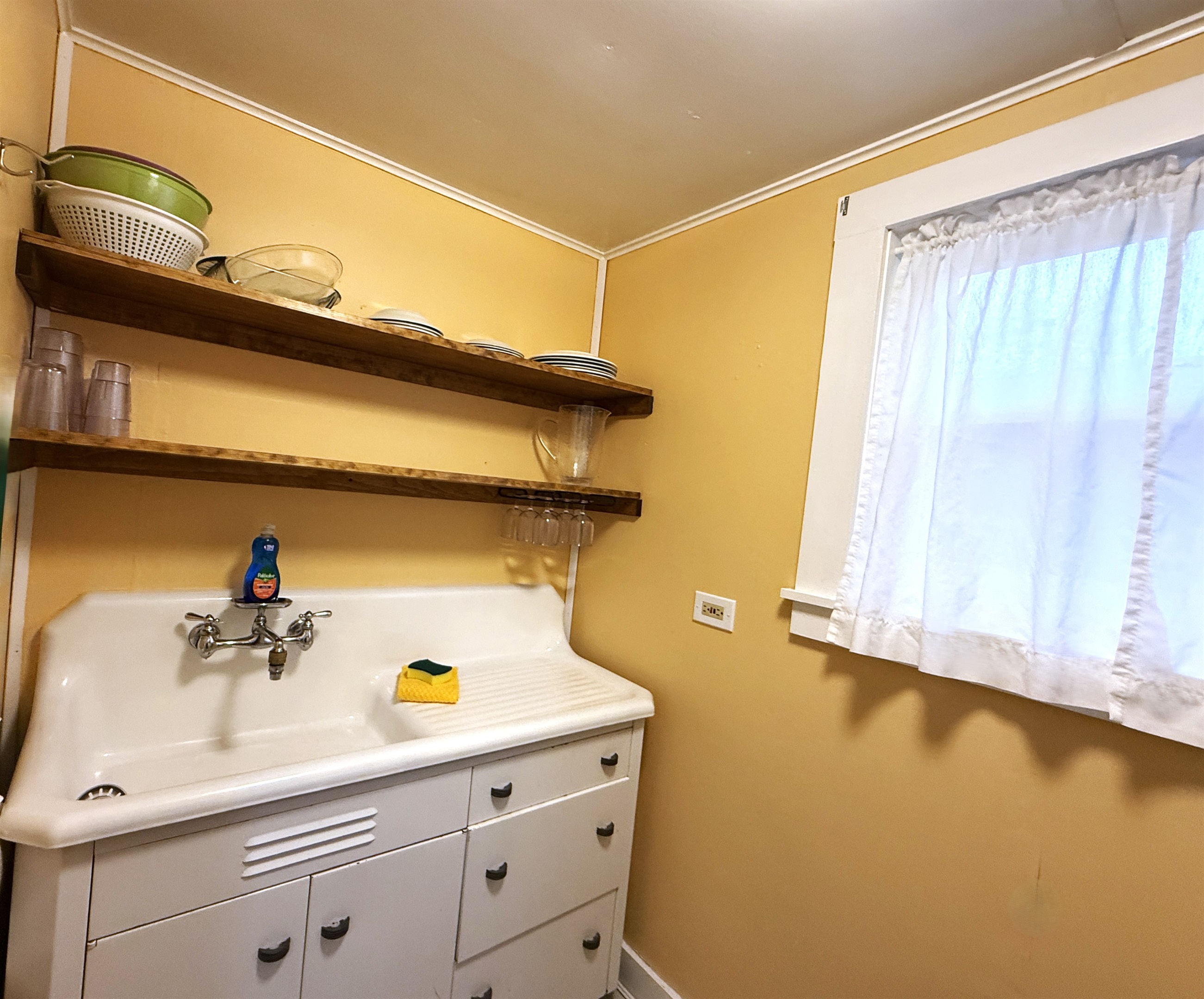 The kitchenette features stove/oven, microwave, toaster, and a Keurig Duo coffee maker plus all the basic utensils, plates, cups etc. There is a full size refrigerator in the front dining room on the cottage.