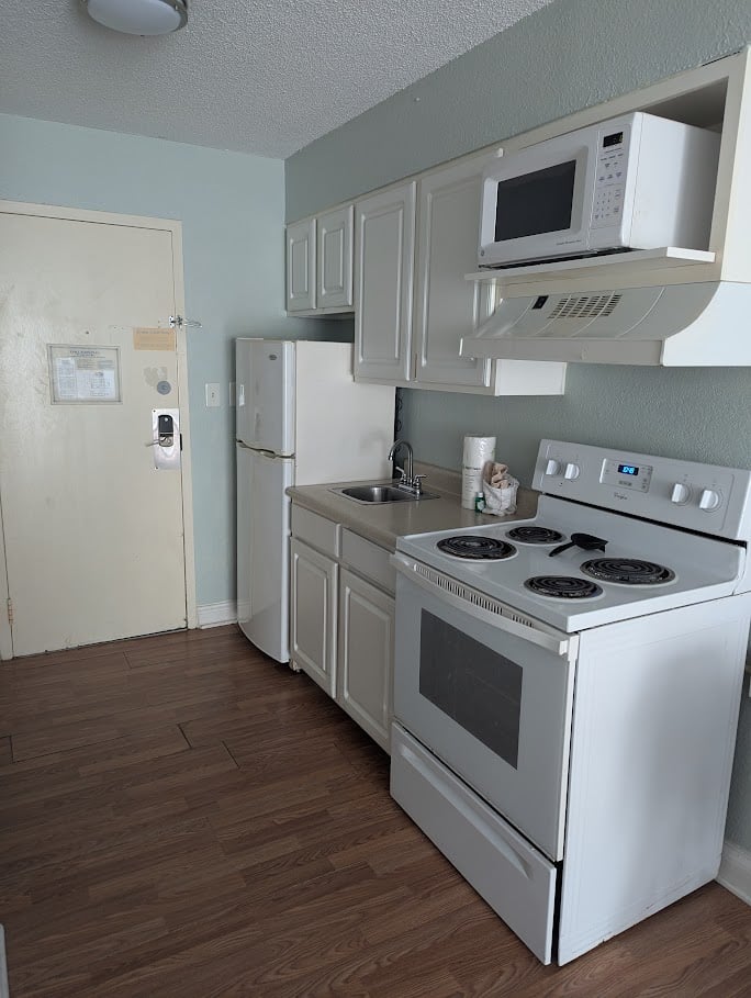 This rental features a full kitchen with a full size fridge and freezer, stove and oven, a microwave, kitchen sink, coffee maker, toaster, and plentiful cabinet space. Everything you need to cook up a meal or prepare a small snack will be easy to do right from the room! We provide cookware, utensils, glassware, and all basic cooking necessities for the kitchen. For guests who prefer to dine out, Myrtle Beach has hundreds of incredible dining options within a short walk, drive, or Uber. Uber Eats, DoorDash, and other food delivery services are very popular in this area.