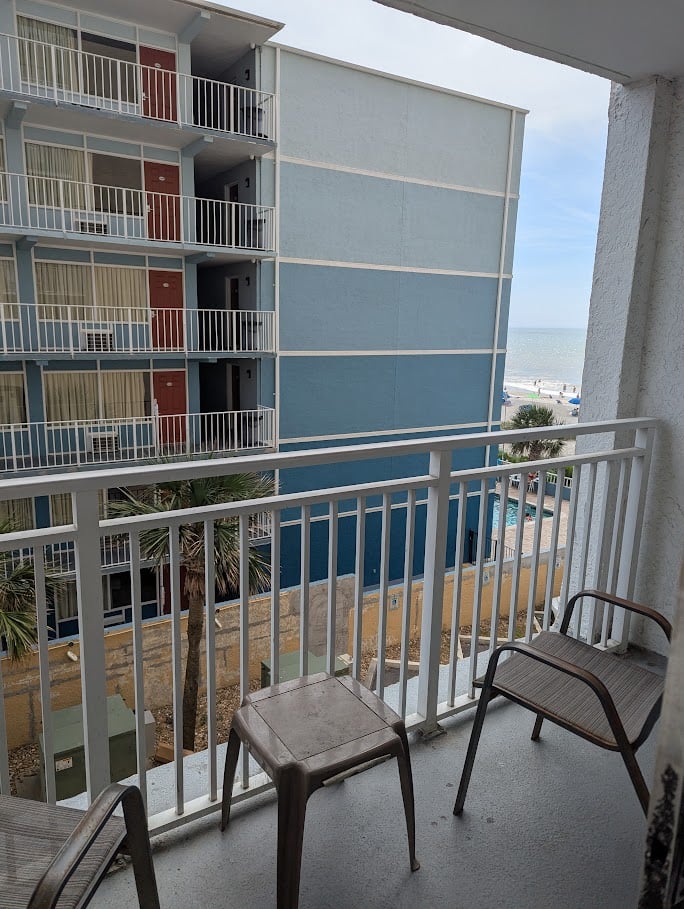 The search for your next vacation rental ends here! Check out this 4th floor, ocean view vacation rental at the Sea Mist Resort in Myrtle Beach, SC. This ocean view condo is fully furnished and immaculately decorated with everything you need for your next vacation. This apartment features 2 queen beds, and will comfortably accommodate 2-4 guests. The unit is also furnished with a TV with basic cable, AC and heat, full size fridge and kitchen, stove/oven, microwave, private bathroom with tub/shower and vanity, as well as a private balcony. This is a perfect rental for a couple, group of friends, or a small family! Located on the 4th floor of the Driftwood Building, guests will enjoy a nicely updated condo with a view of the ocean!