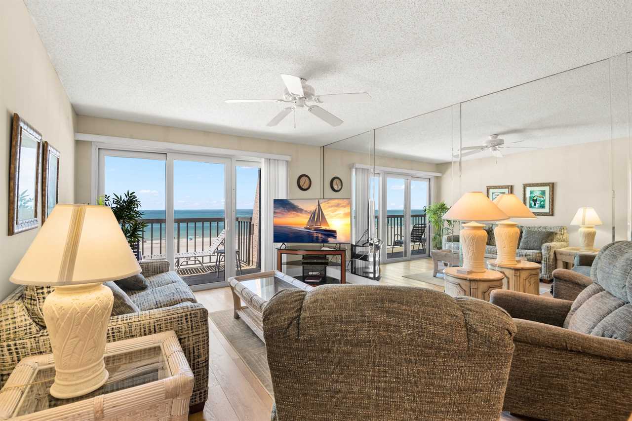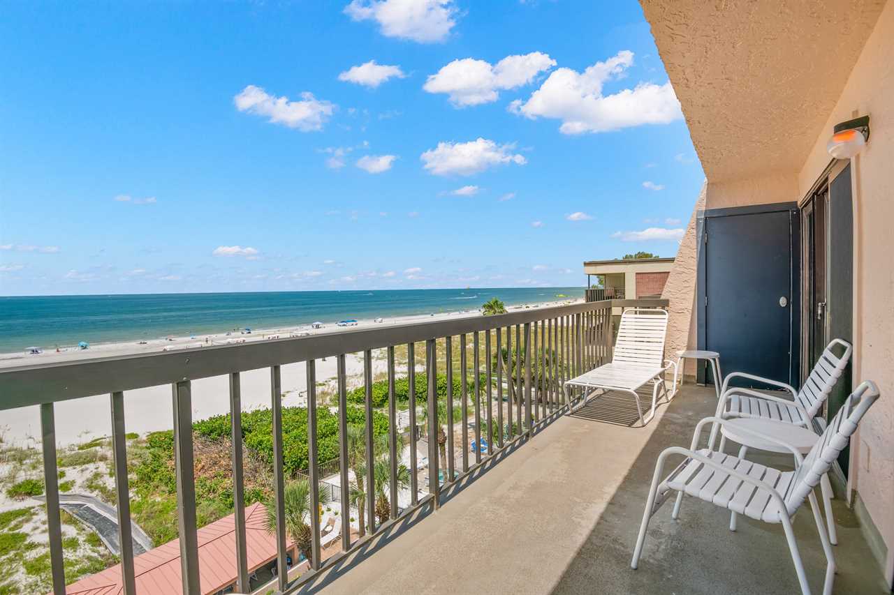 - Located on the front of the building with a balcony overlooking the beach and Gulf