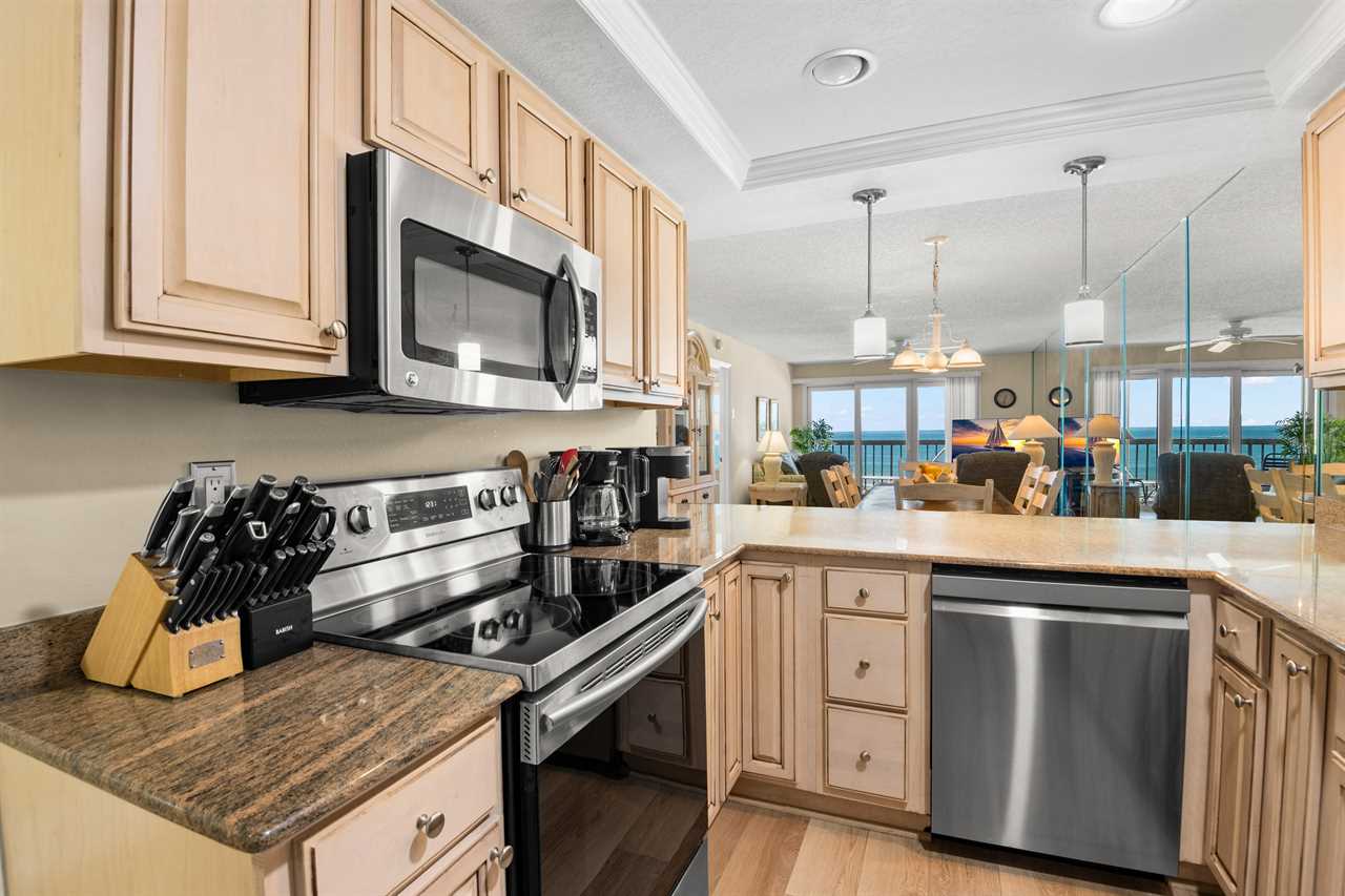 - Fully equipped modern kitchen with granite countertops