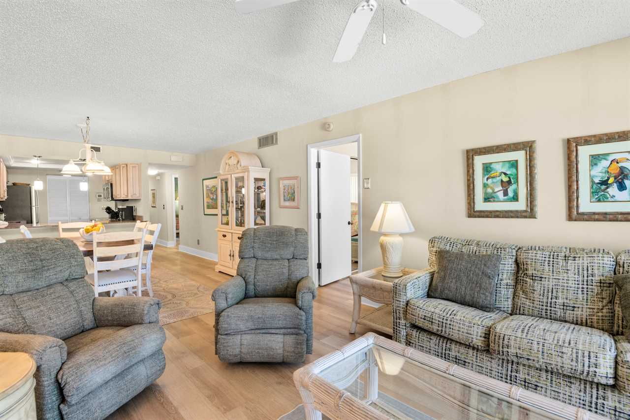 Welcome to Unit 502, a fully furnished 1,145 sq ft 2-bedroom, 2-bath condo offering front-row views of the beach and Gulf from its full-width balcony. With granite countertops, a modern kitchen, and a thoughtful layout, this unit is perfect for families or groups seeking comfort, style, and space.