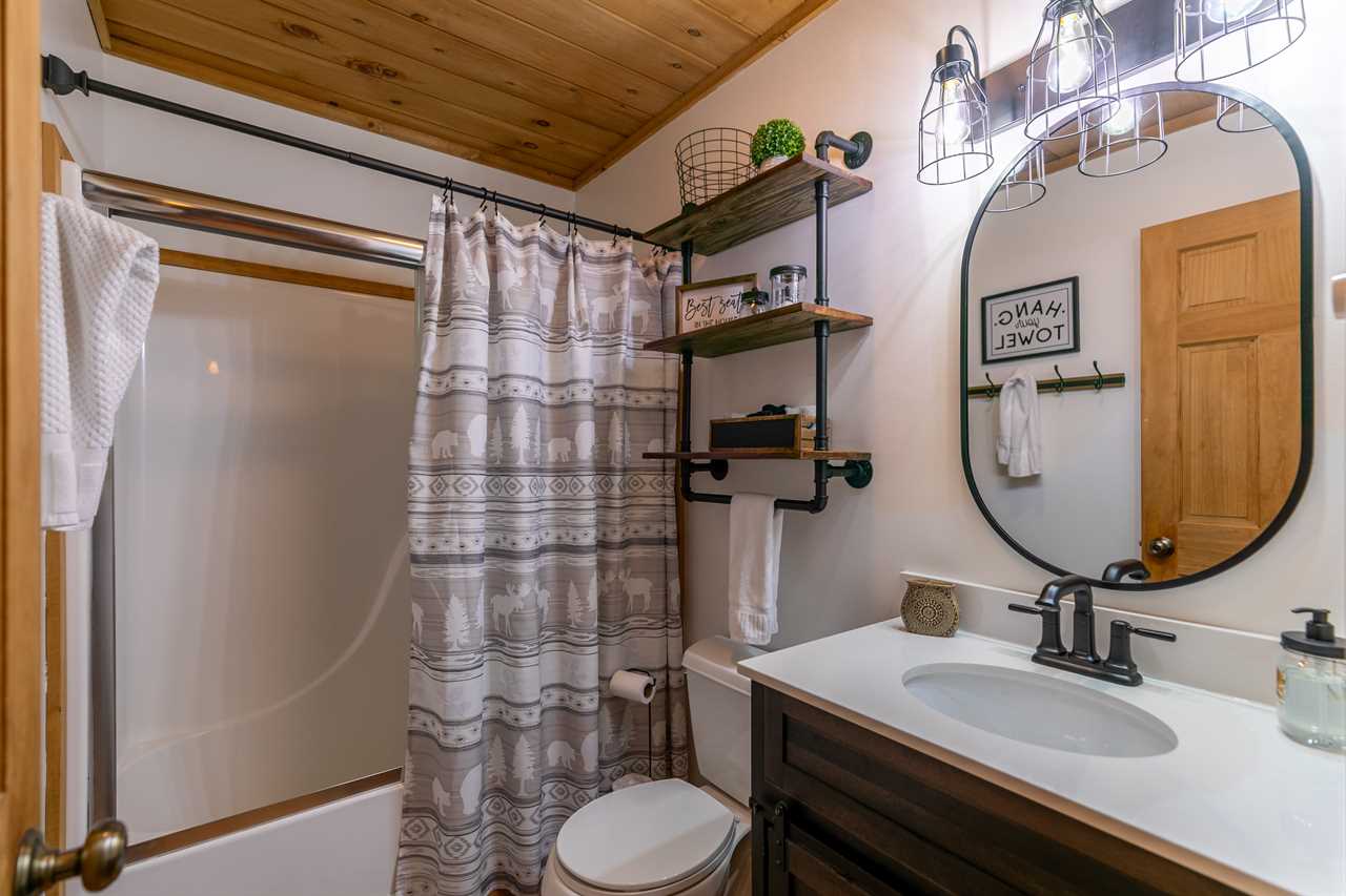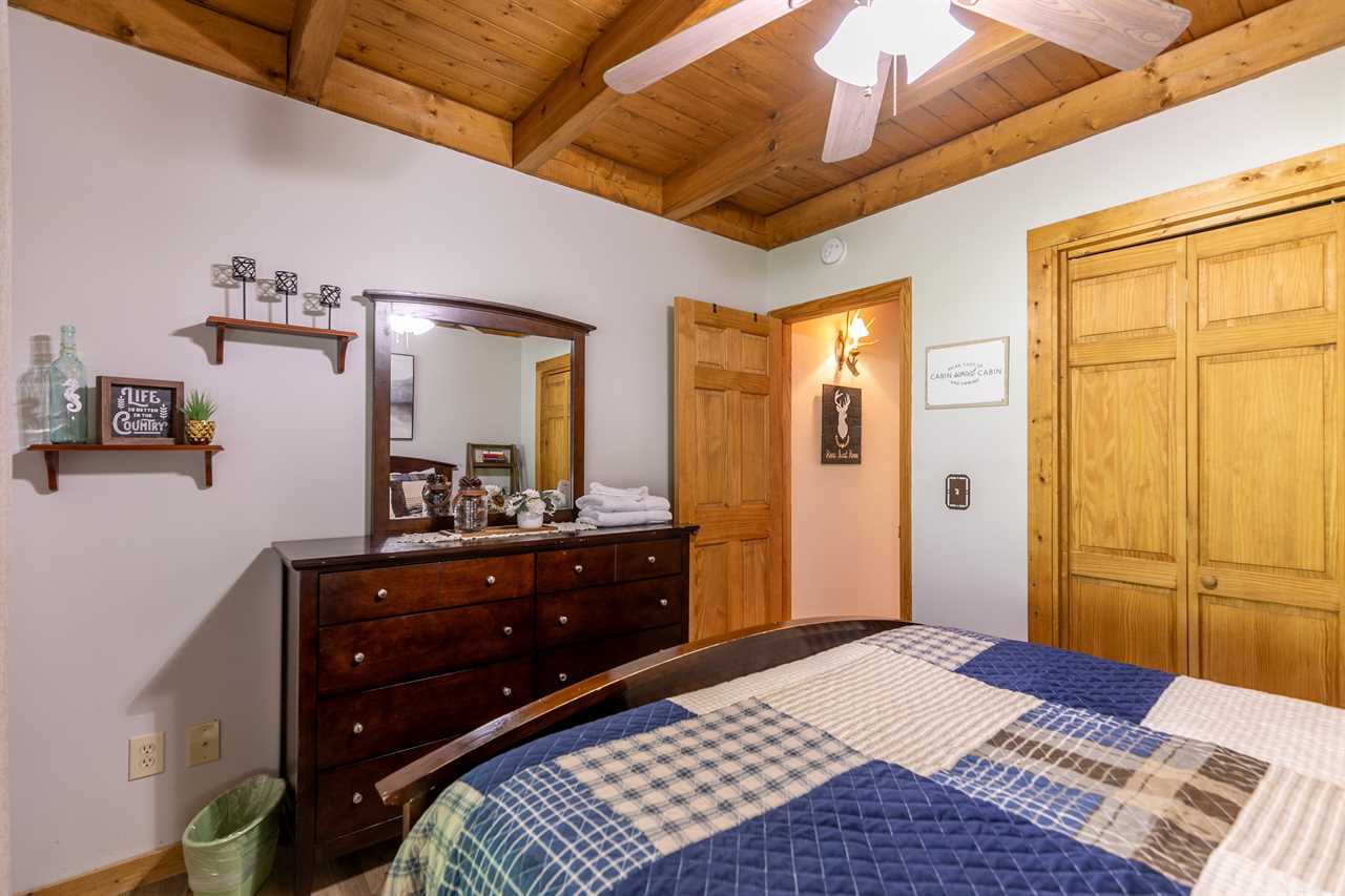 You'll find the family room, dining room, kitchen, laundry room and two Queen bedrooms on the main level. There is also a full bath between the two bedrooms. Each of these two Queen bedrooms have chic LVP flooring!
