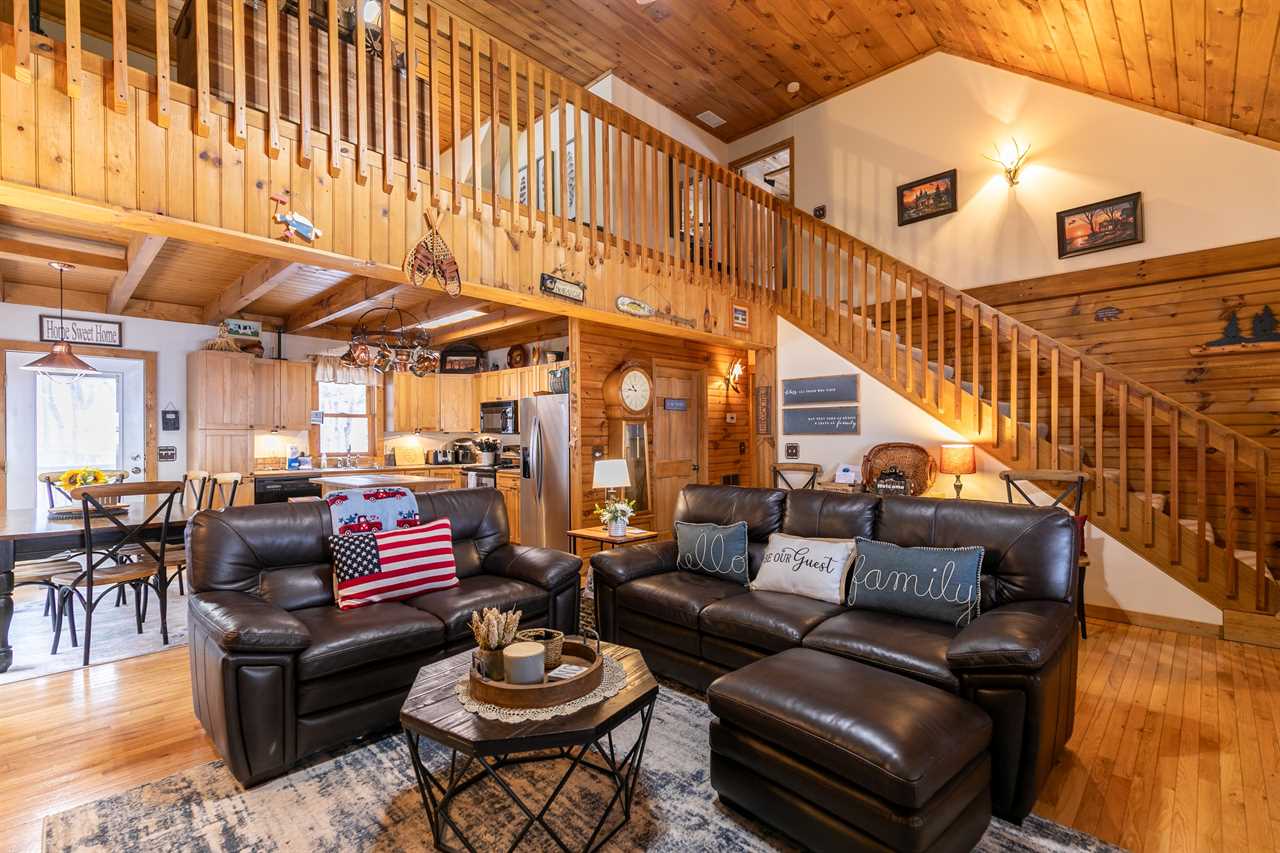 Upstairs you will find the large loft with plenty of furnishings and a sofa sleeper. The king suite bedroom with a private bath offers a newly upgraded double vanity, whirlpool tub and separate shower.