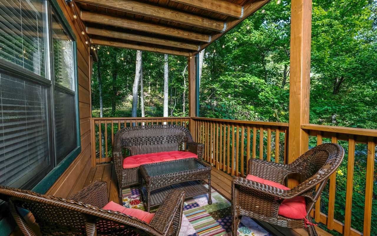 • 2 Covered Decks with wooded views & seasonal mountain scenery